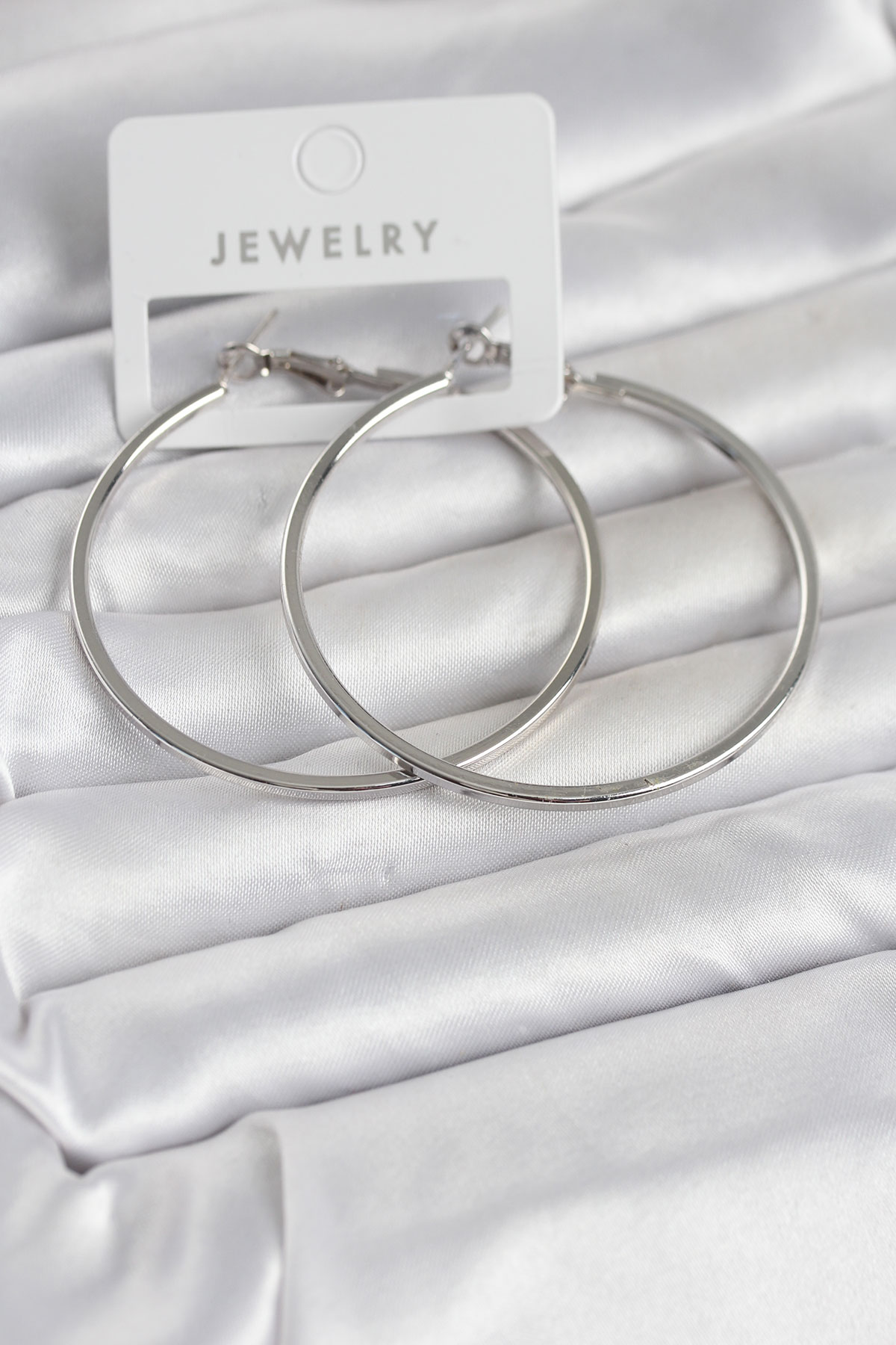 Gümüş Renk Pirinç Köşeli Kenar Halka 54 mm Kadın Küpe - 268473