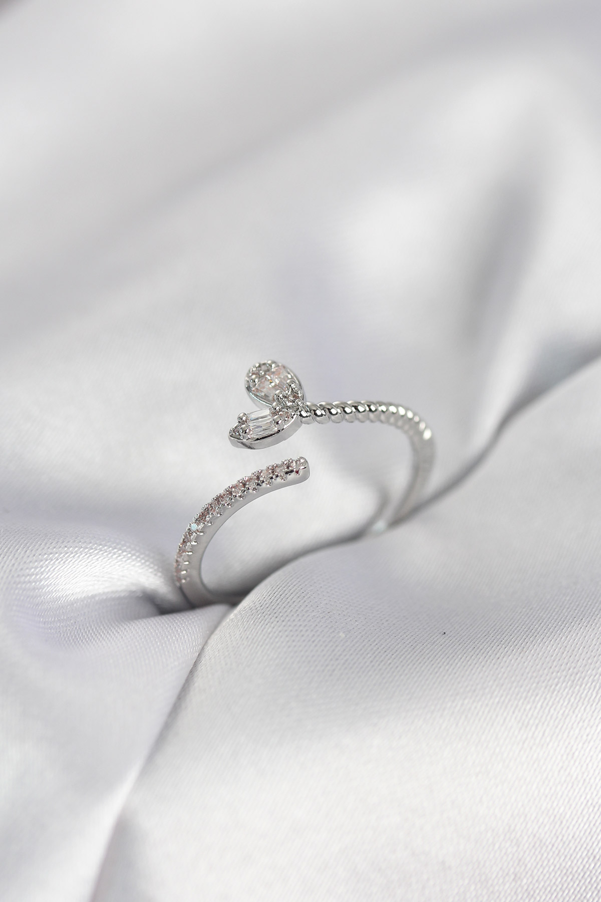 Gümüş Renk Pirinç Kuyruklu Kalp Model Kadın Yüzük - 267607