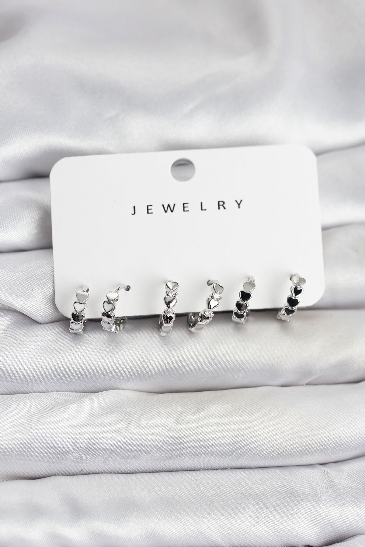 Gümüş Renk Pirinç Minimal Kalp Detaylı Kadın Küpe Seti - 266734
