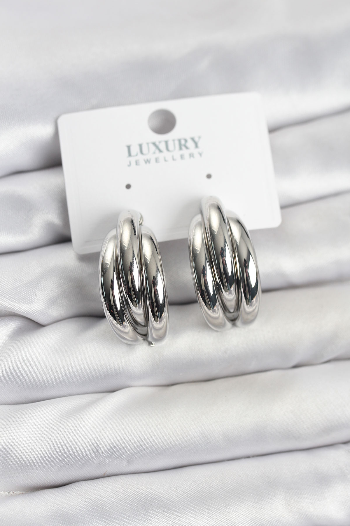 Gümüş Renk Pirinç Yarım Halka Model Kadın Küpe - 266942