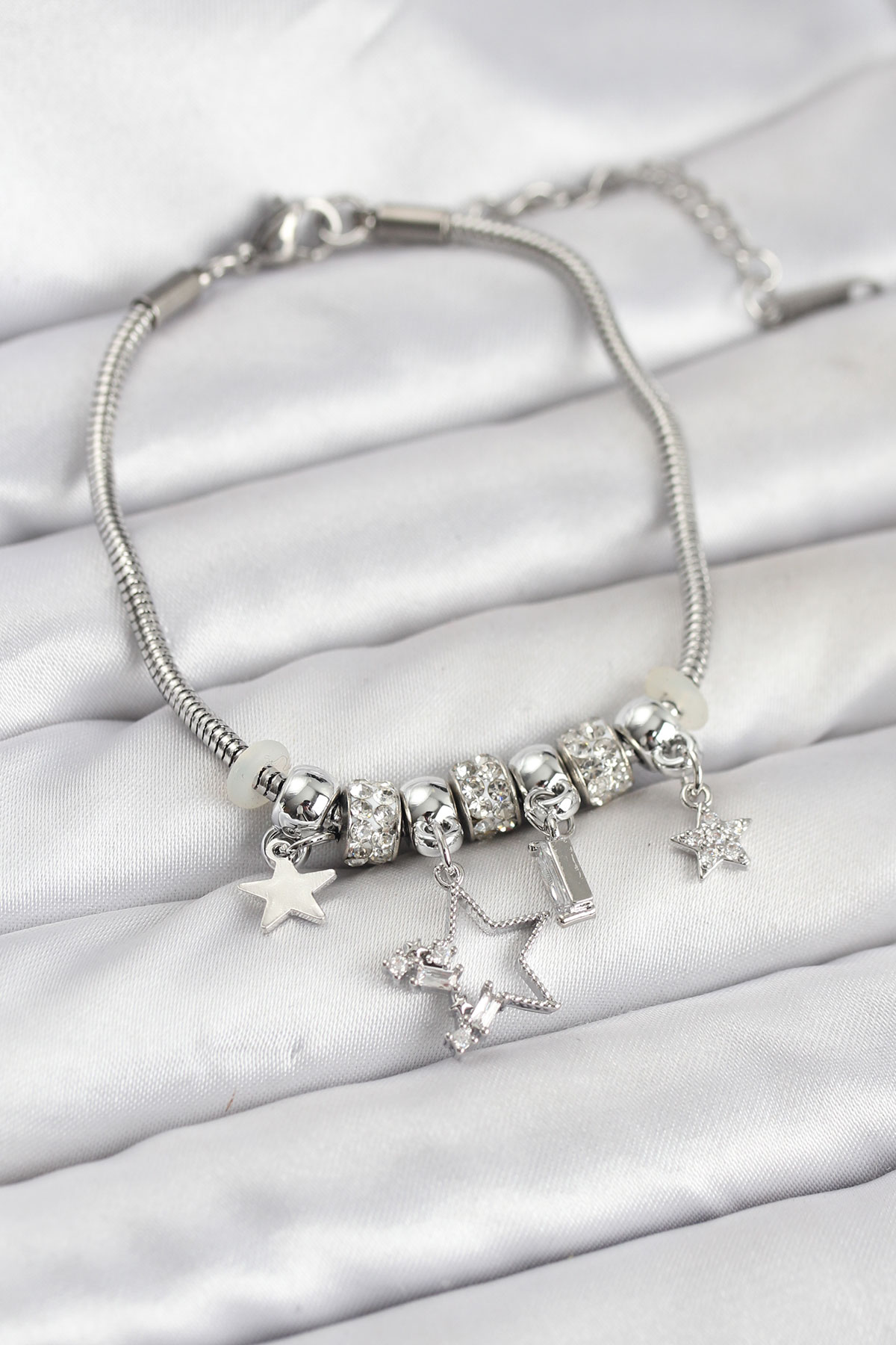 Gümüş Renk Pirinç Yıldız Model Charmlı Kadın Bileklik - 266917