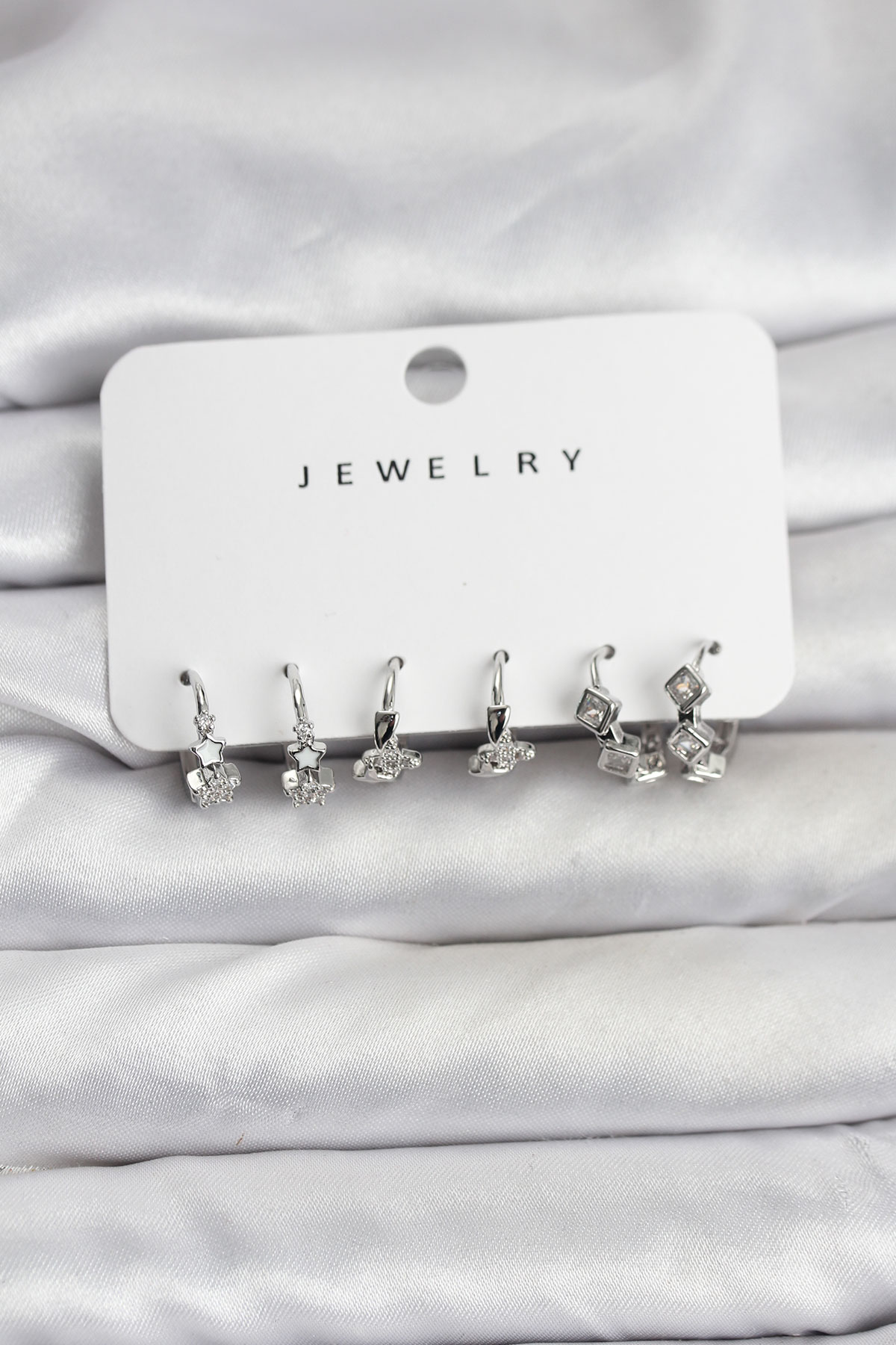 Gümüş Renk Pirinç Yıldız Modelli Kadın Küpe Seti - 266746