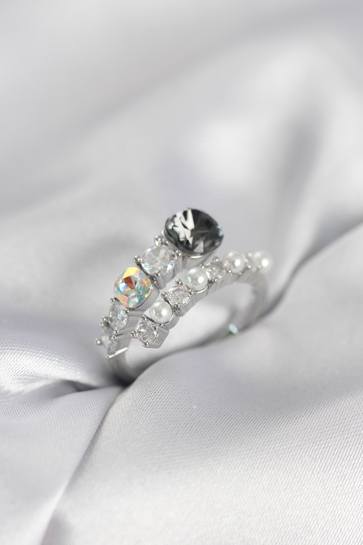 Gümüş Renk Pirinç Zirkon Taşlı İncili Kadın Yüzük - 267577