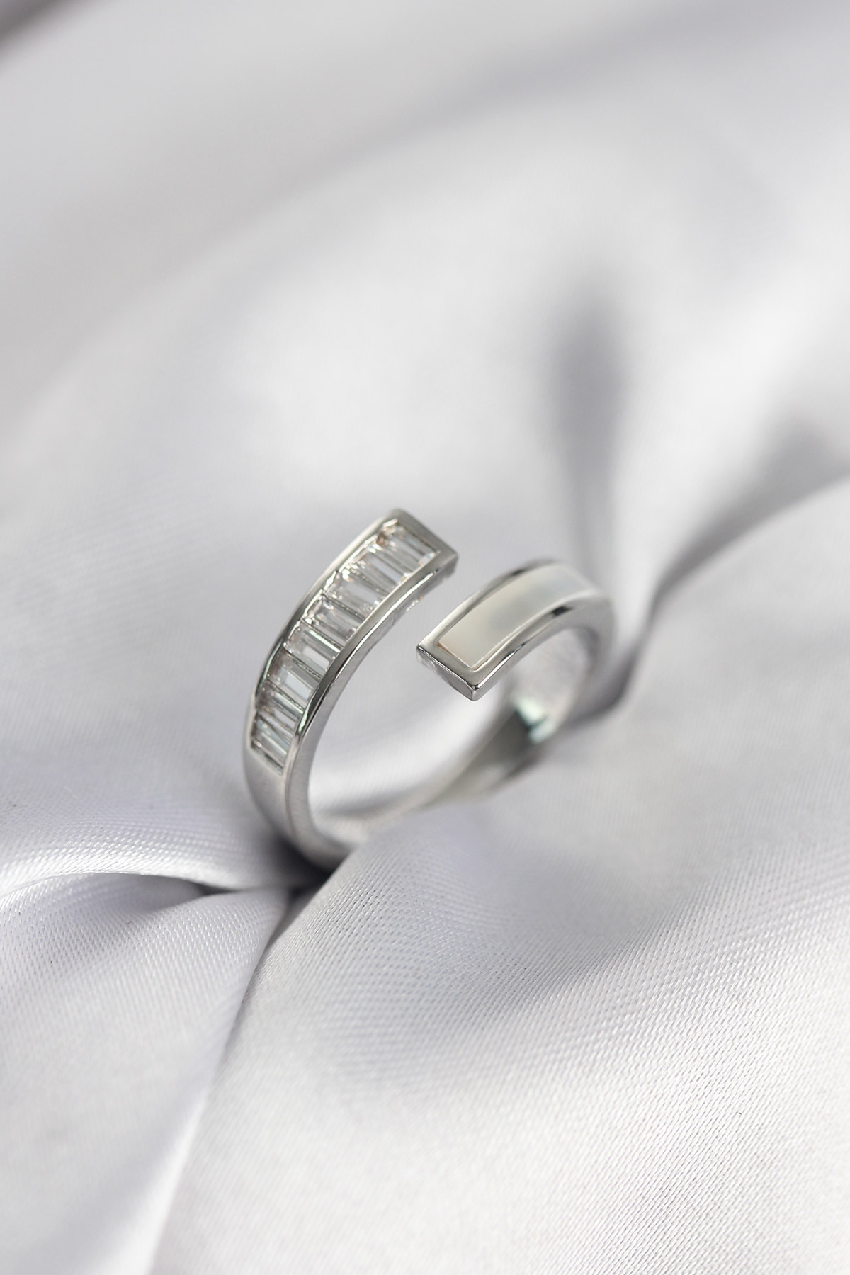 Gümüş Renk Sedefli Baget Zirkon Taşlı Kadın Yüzük - 267494