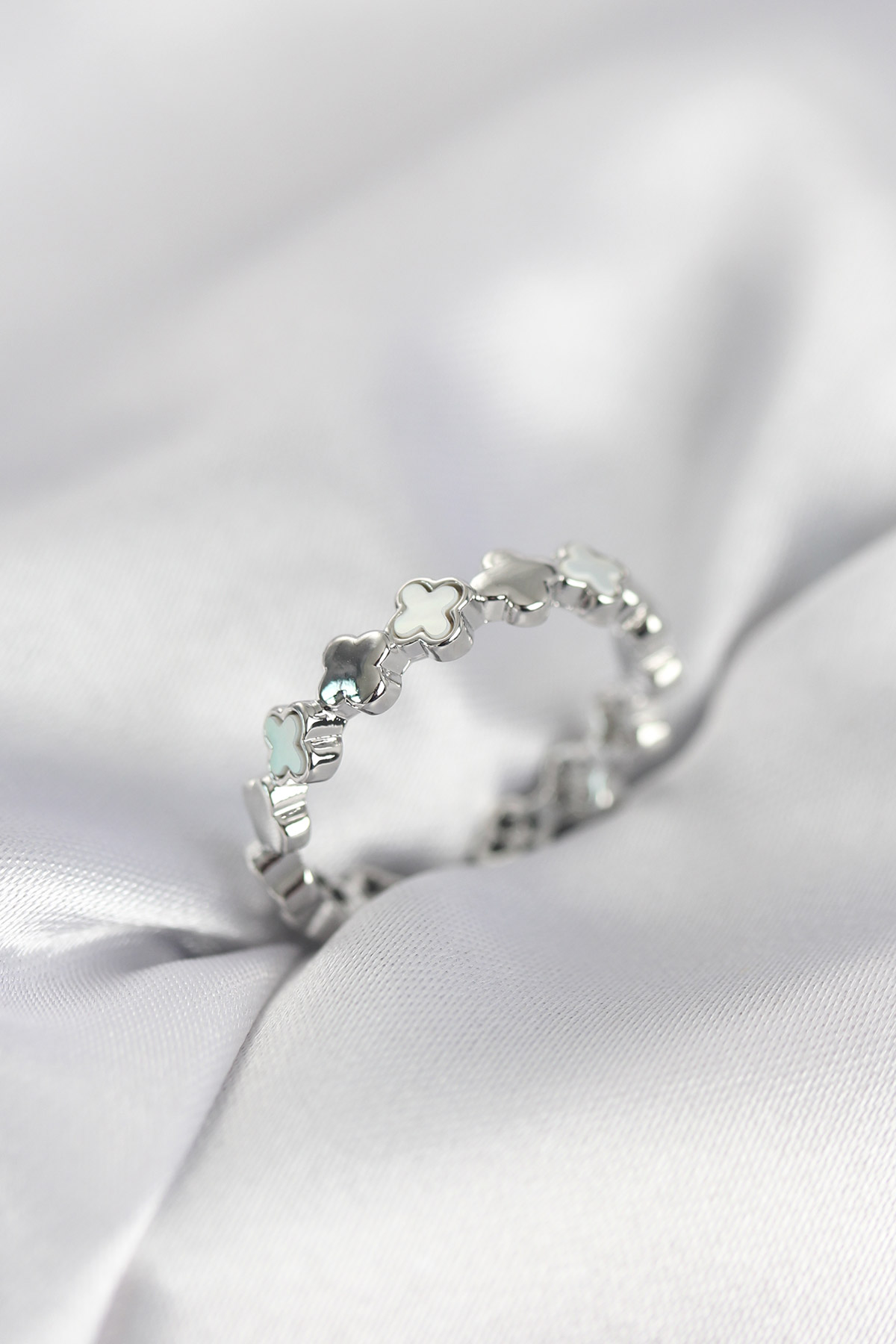 Gümüş Renk Sedefli Yonca Model Kadın Yüzük - 267571