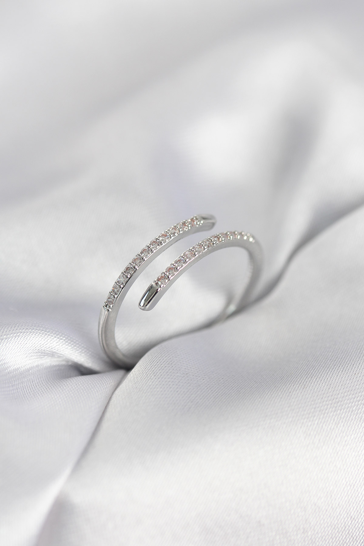 Gümüş Renk Yılan Kuyruk Model Zirkon Taşlı Kadın Yüzük - 267569