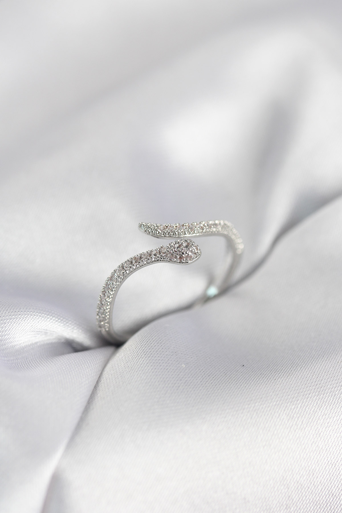 Gümüş Renk Yılan Model Zirkon Taşlı Kadın Yüzük - 267613