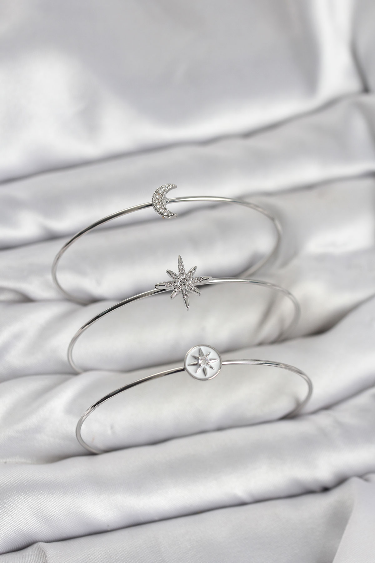 Gümüş Renk Zirkon Taşlı Kutup Yıldızı Model 3'lü Kadın Bileklik Kombini - 267742