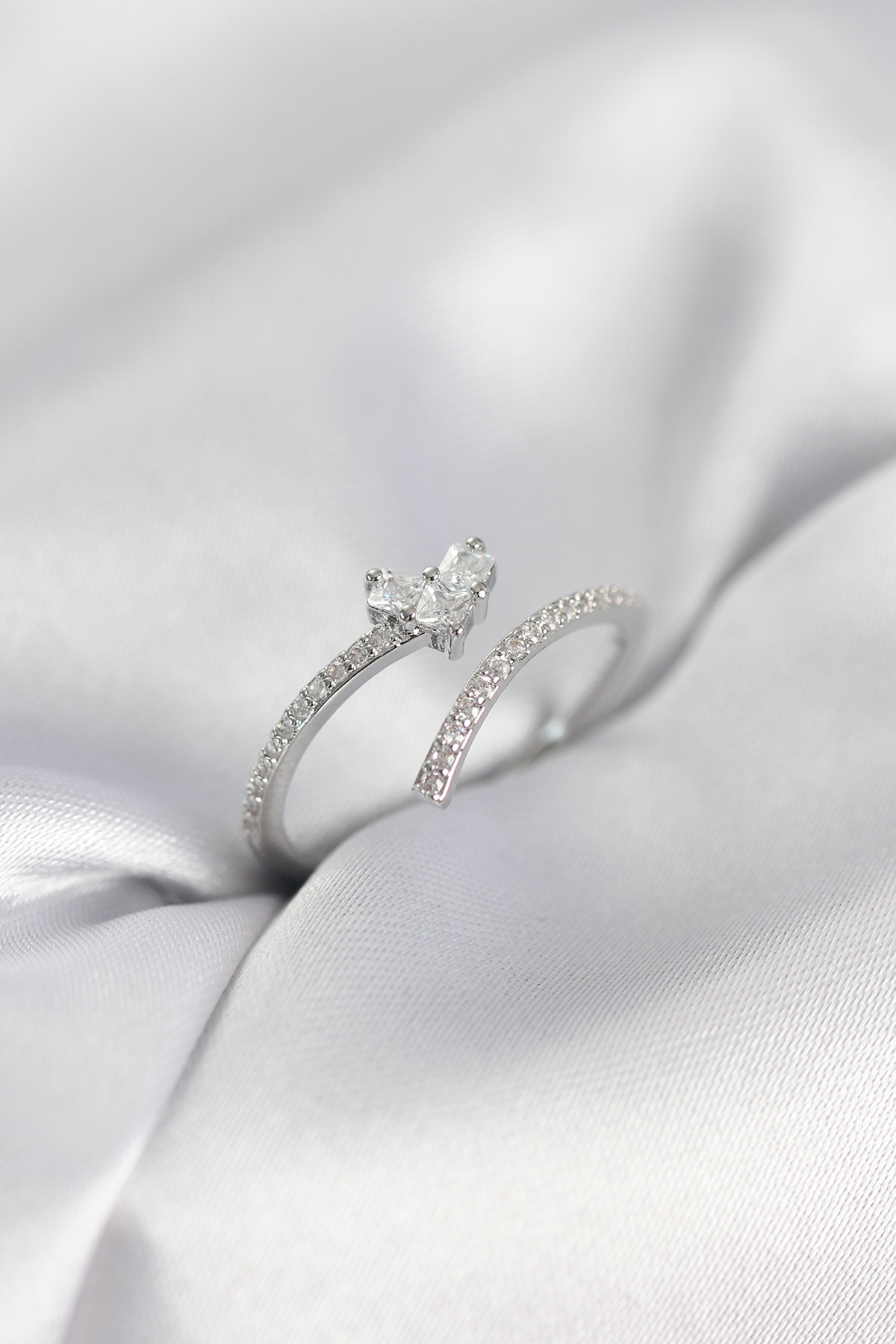 Gümüş Renk Zirkon Taşlı Kuyruklu Kalp Model Kadın Yüzük - 267556