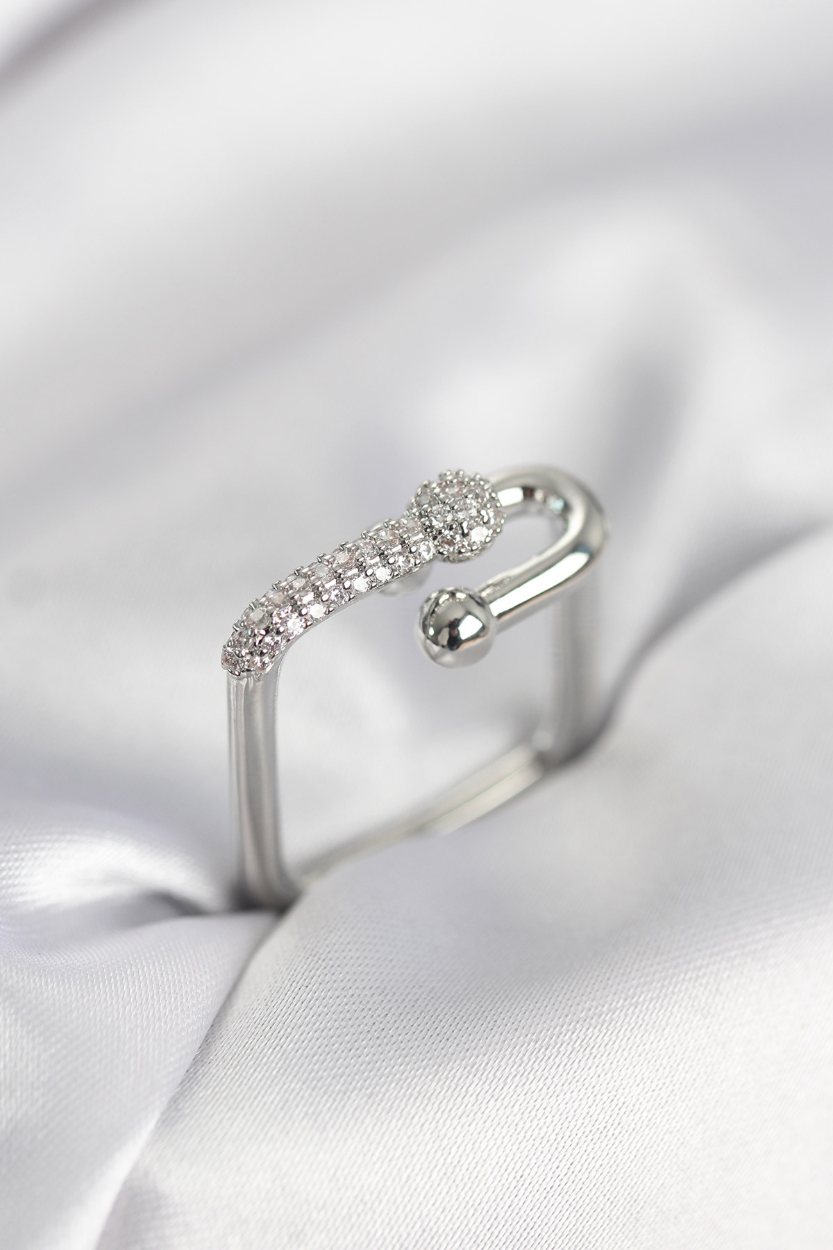 Gümüş Renk Zirkon Taşlı Tifani Model Kare Kadın Yüzük - 267544