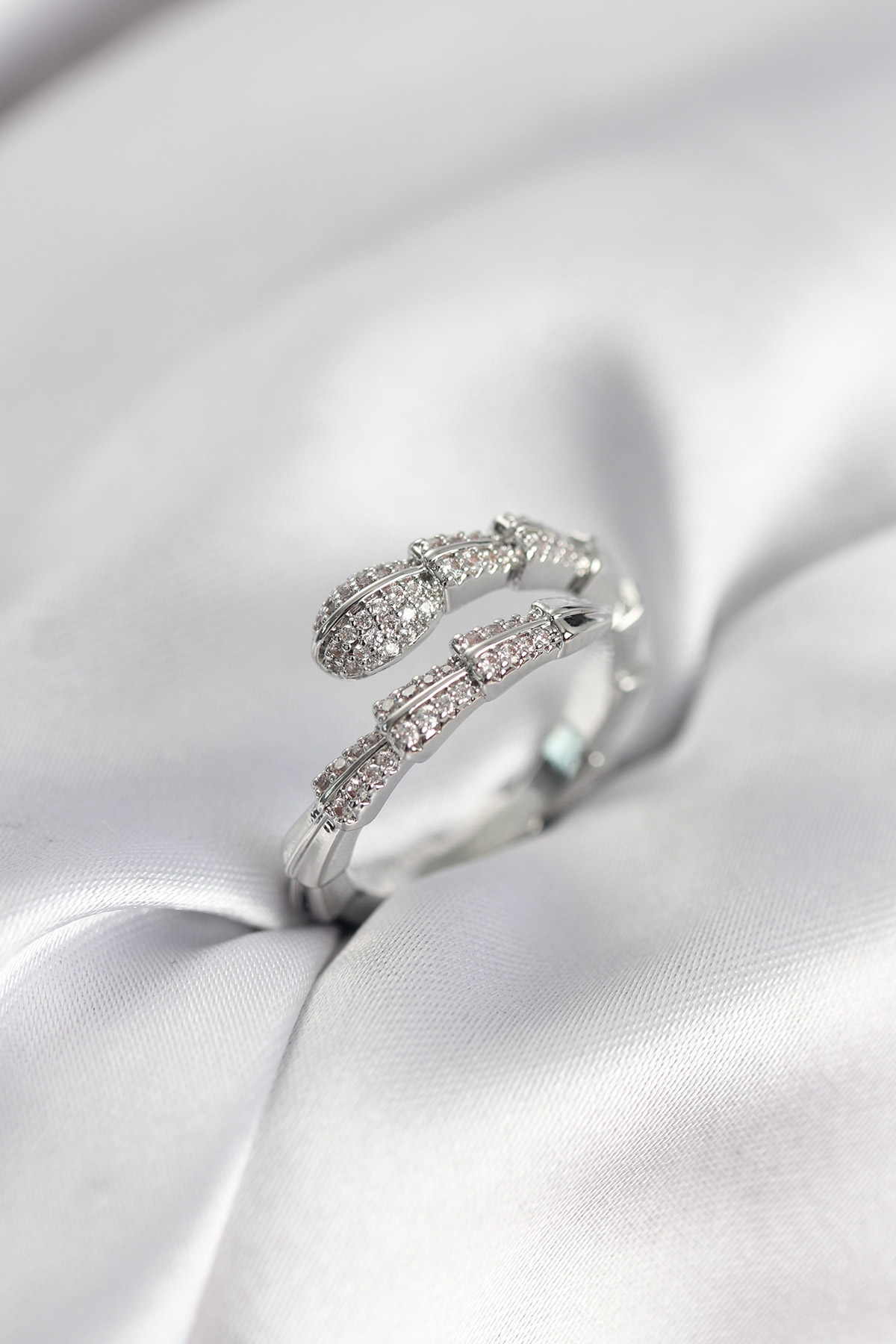 Gümüş Renk Zirkon Taşlı Yılan Model Kadın Yüzük - 267492