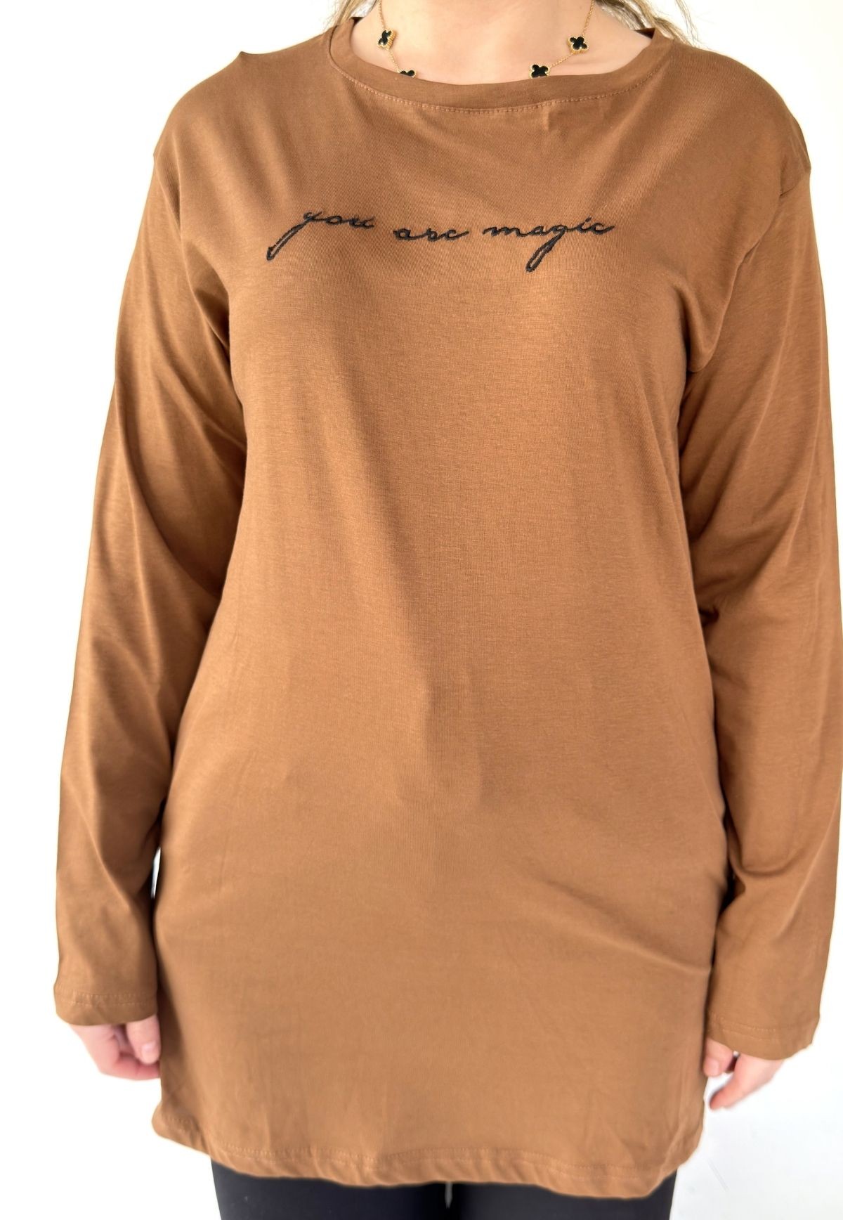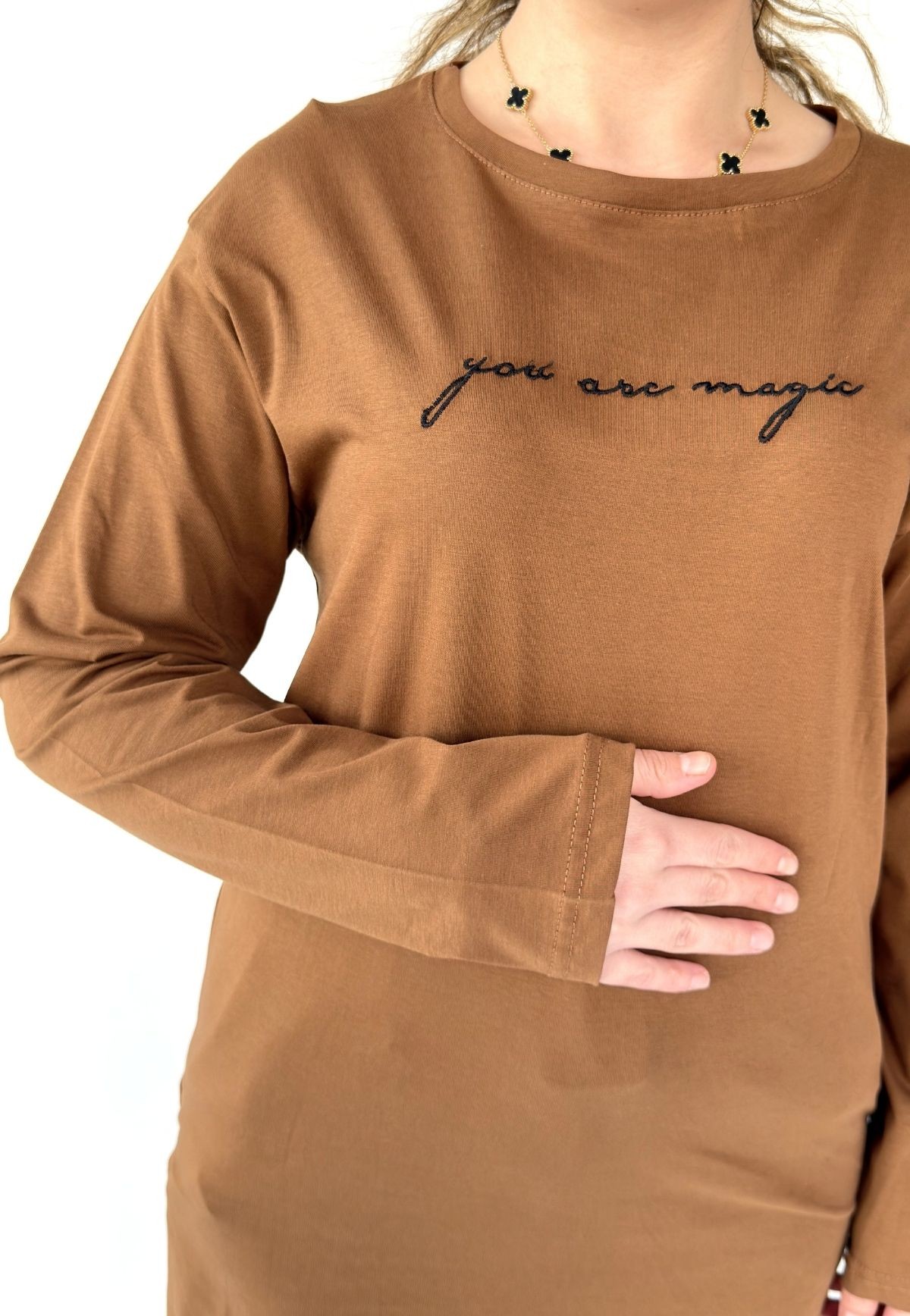 Hetta Kahverengi Uzun Kollu Tişört - 267972