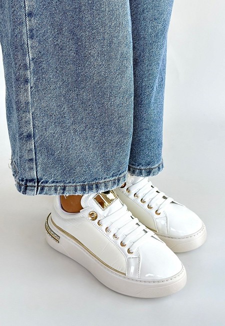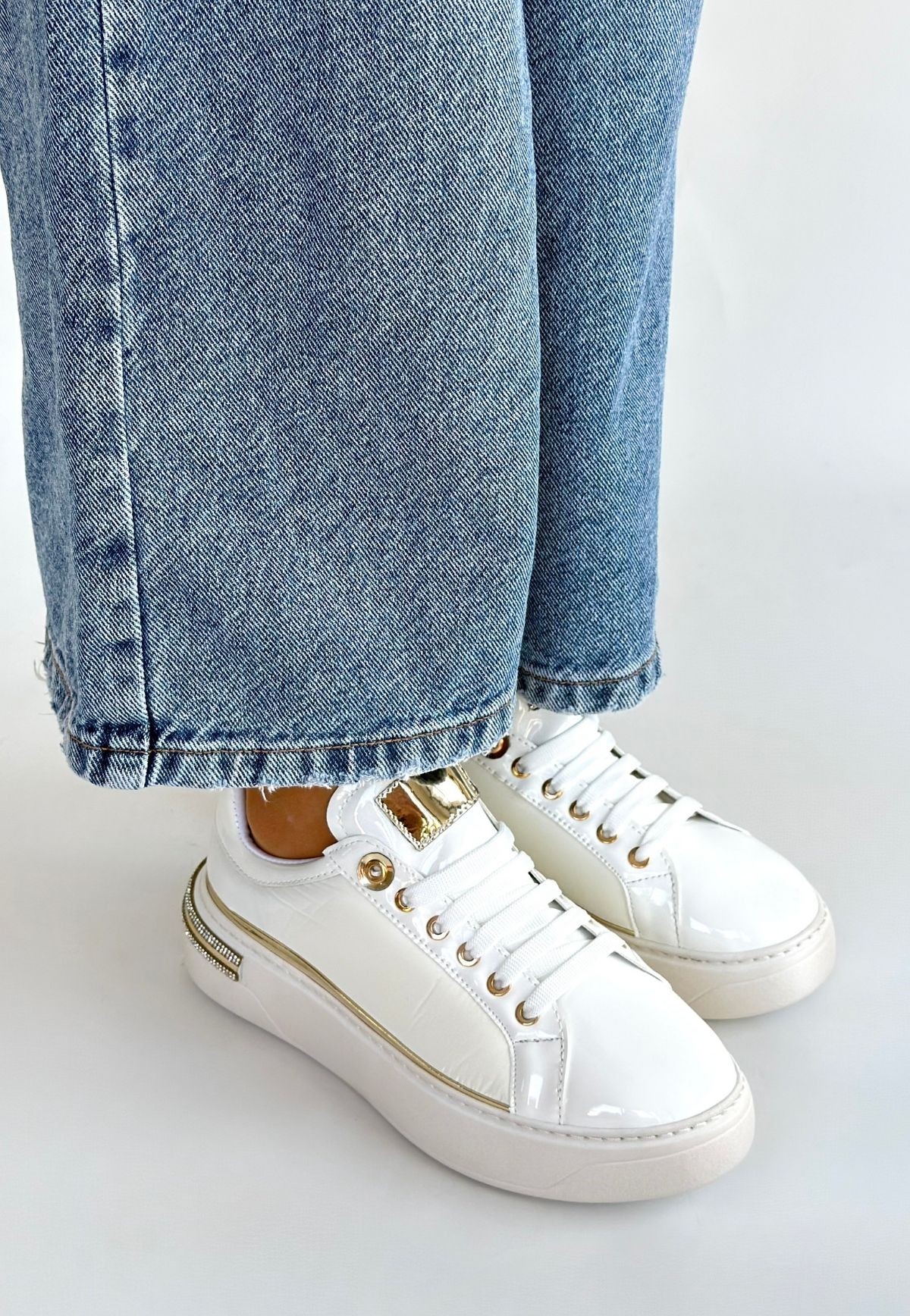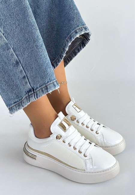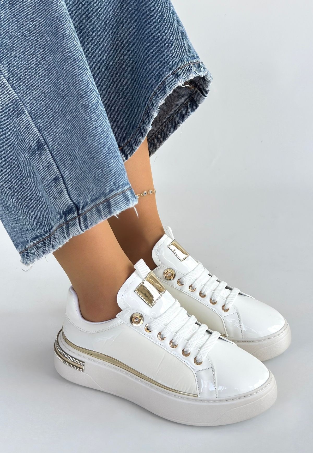 Hley Beyaz Rugan Paraşüt Detaylı Bağcıklı Spor Ayakkabı - 265602