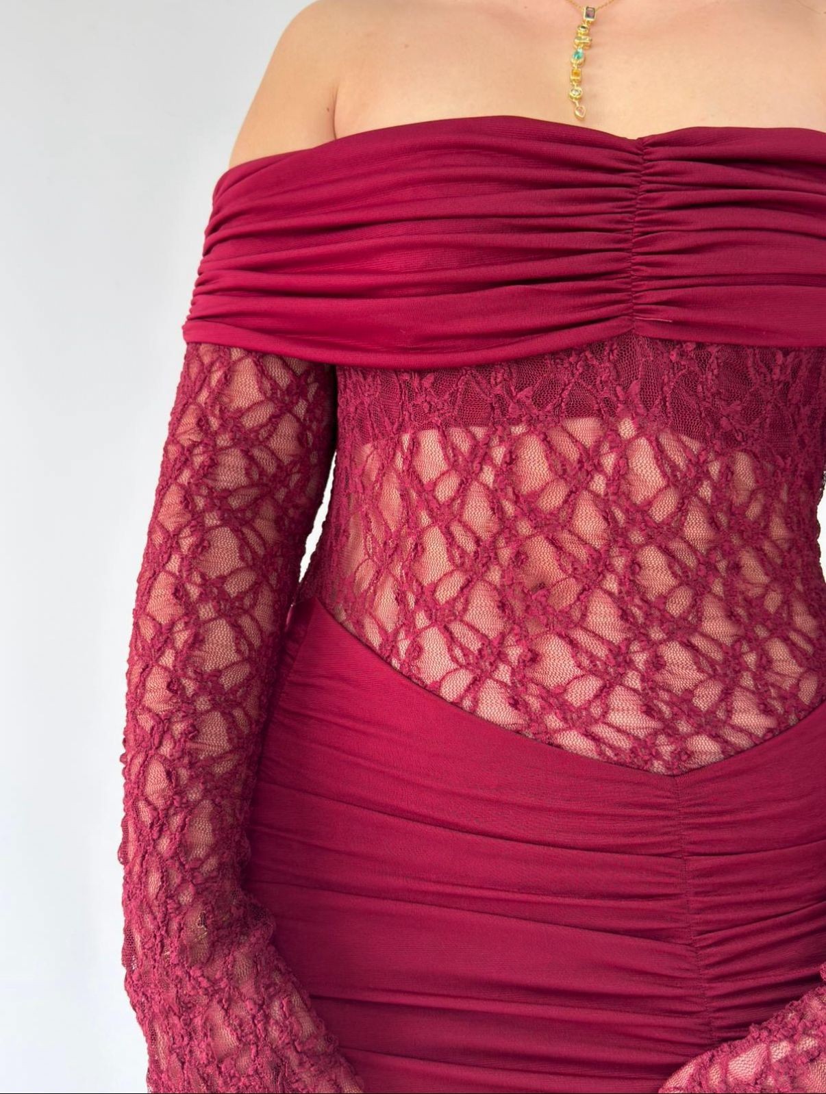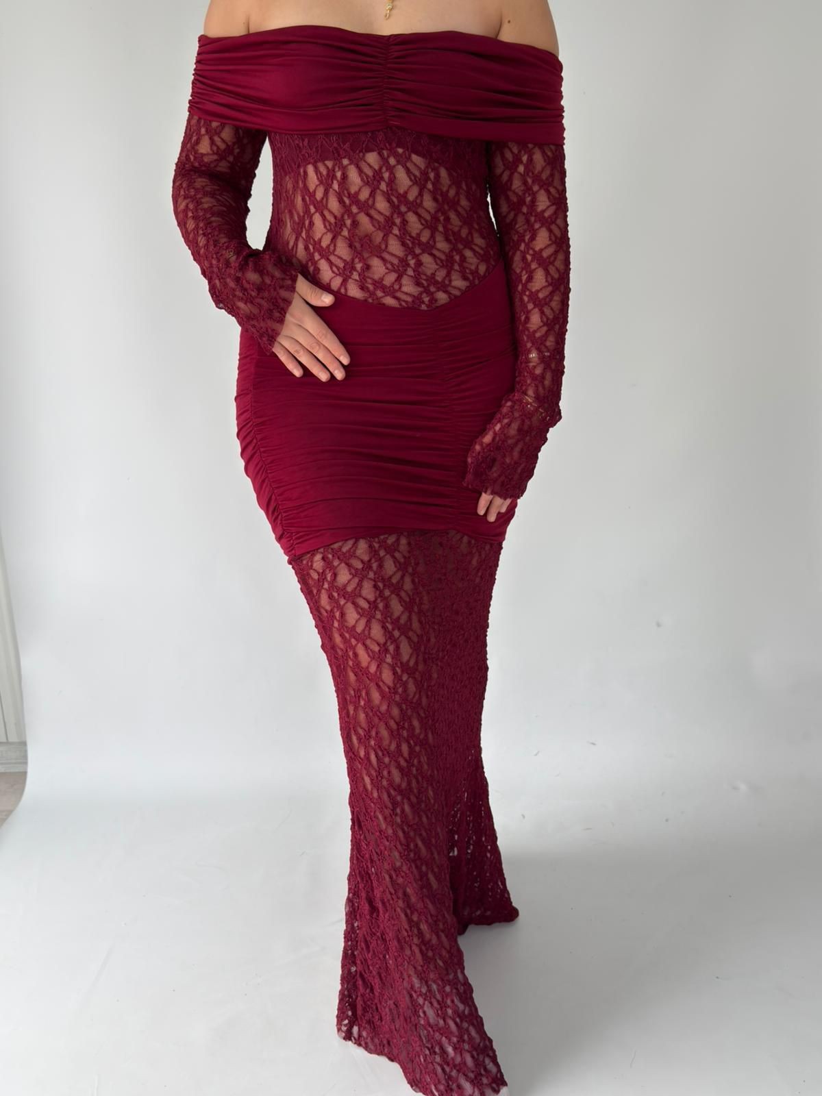 Isso Bordo Dantelli Boydan Elbise - 267913