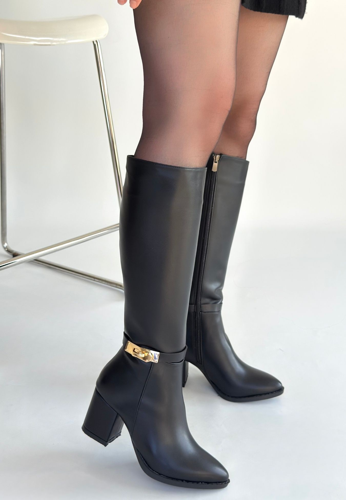 Detay: Topuklu Diz Altı Yandan Fermuarlı Çizme