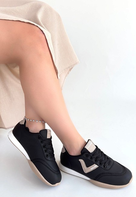 Jowen Siyah Cilt Bej Detaylı Bağcıklı Spor Ayakkabı - 265622