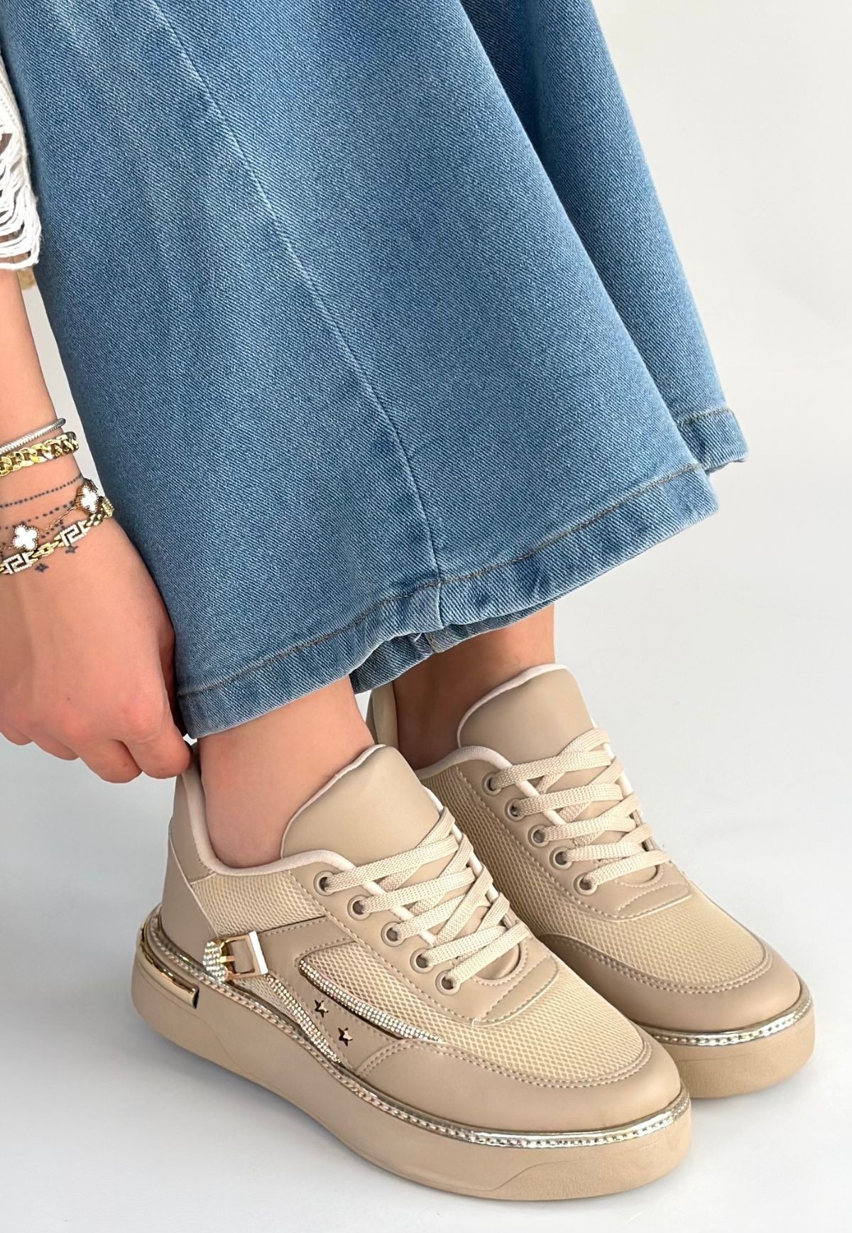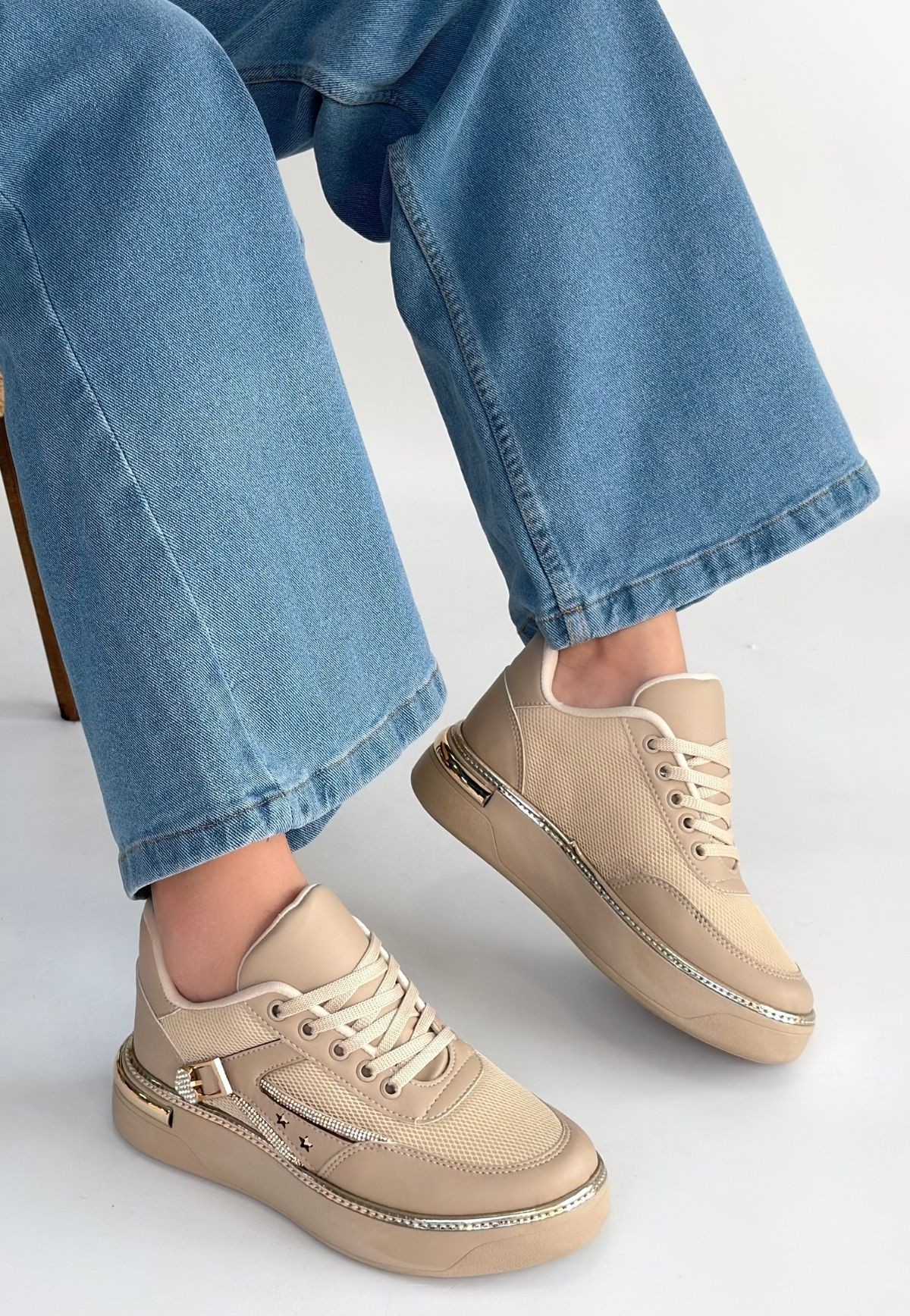 Junda Bej Cilt Bağcıklı Spor Ayakkabı - 267262