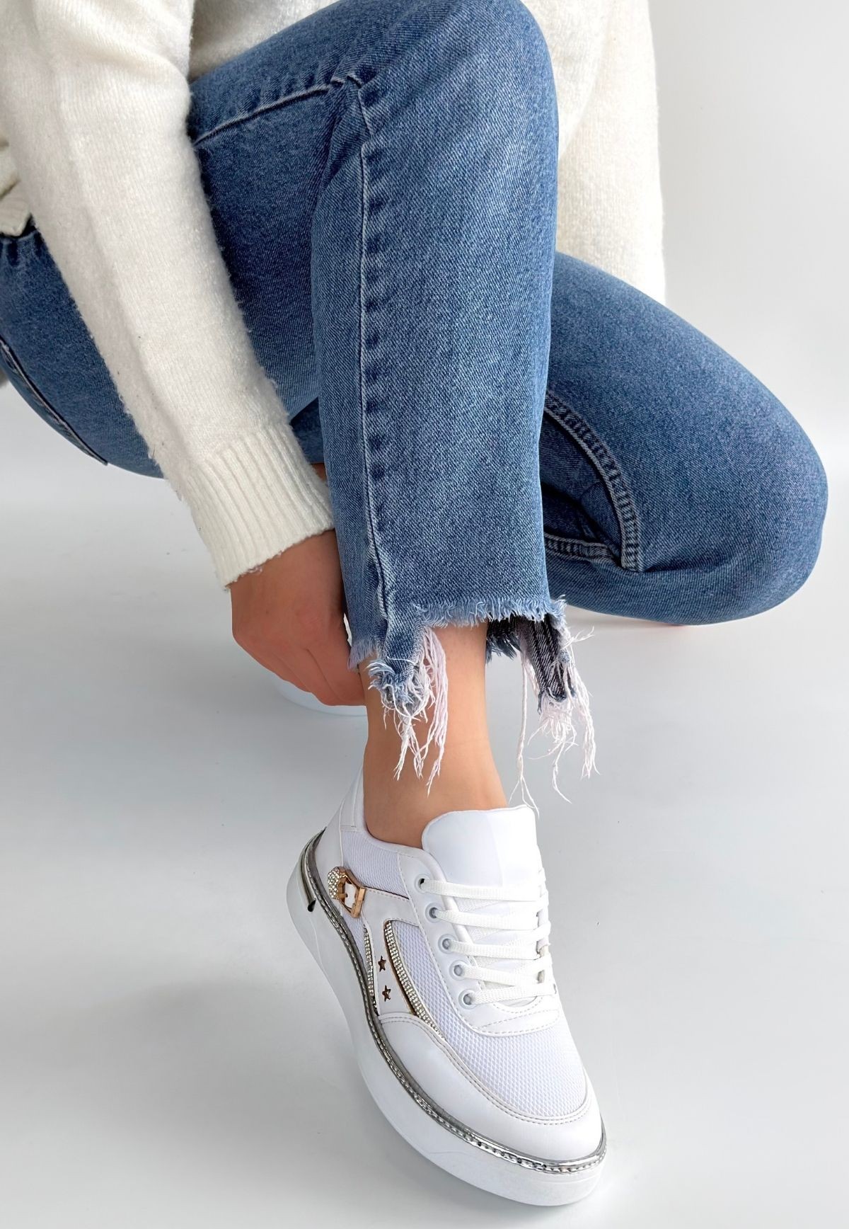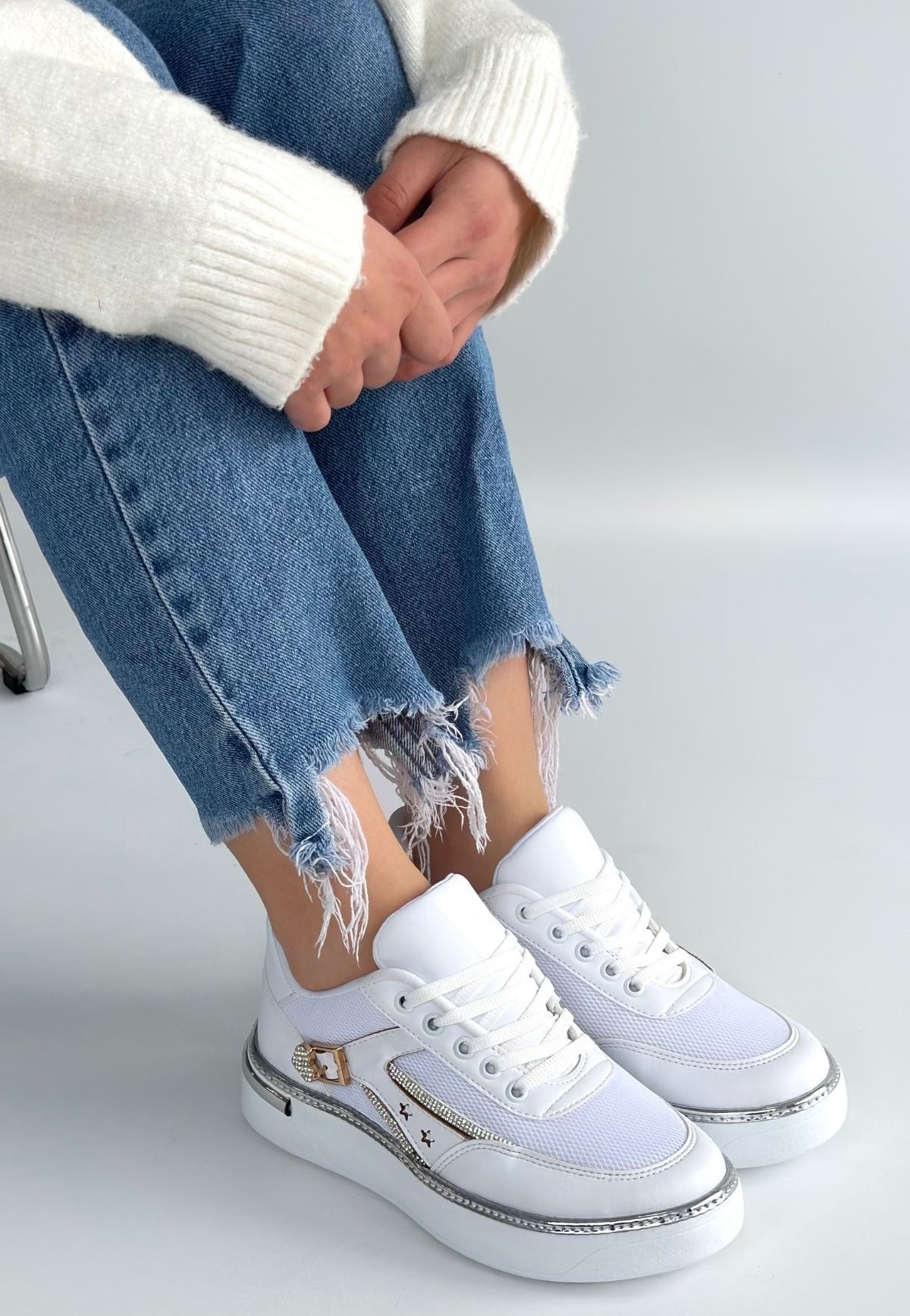 Junda Beyaz Cilt Bağcıklı Spor Ayakkabı - 267261