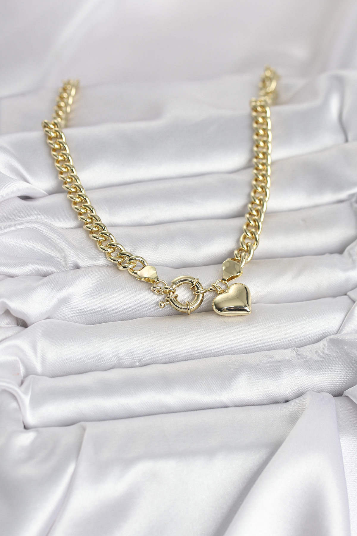 Kalp Detaylı Gold Renk Pirinç Kadın Kolye - 267710