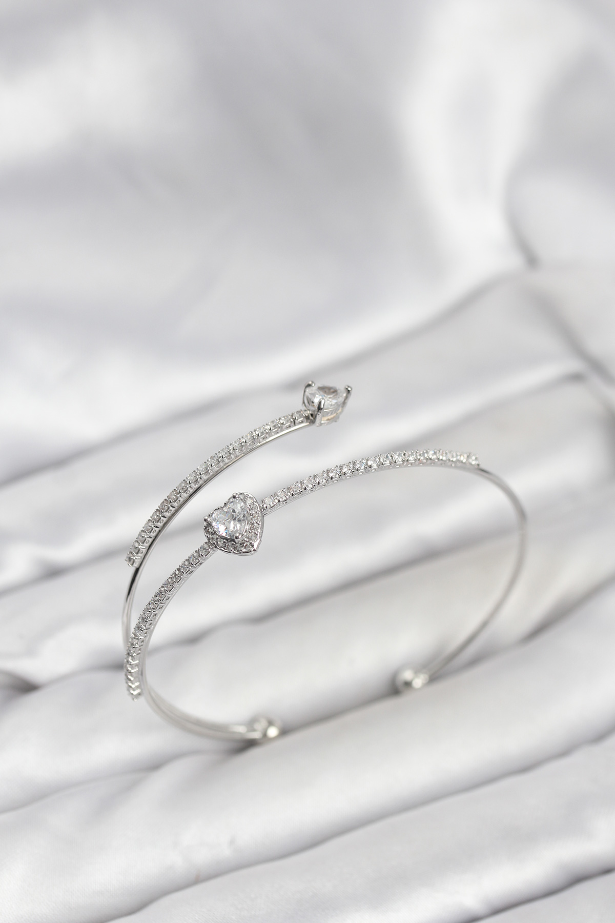Kalp Model Pirinç Gümüş Renk Kadın Bileklik - 267065