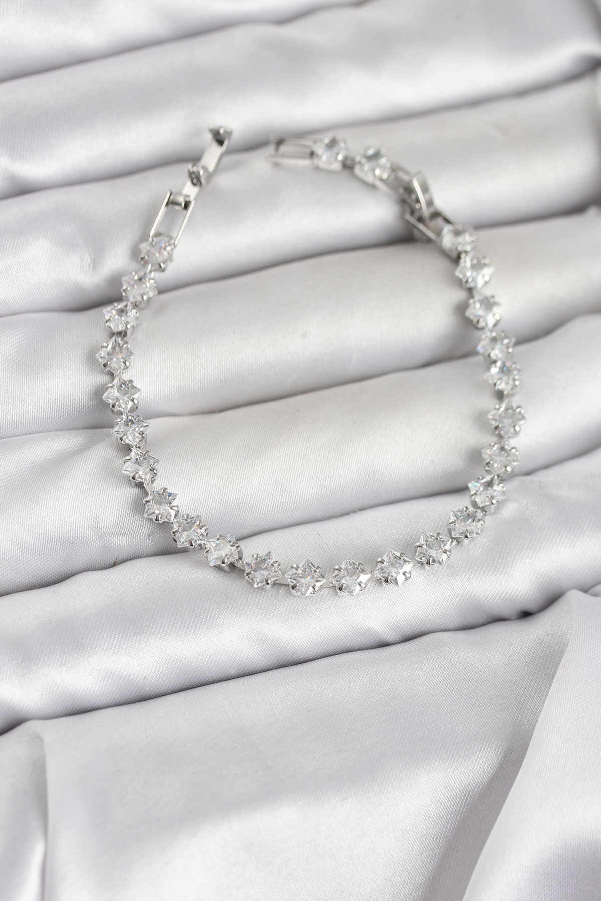 Kare Zirkon Taşlı Gümüş Renk Pirinç Su Yolu Kadın Bileklik - 267713