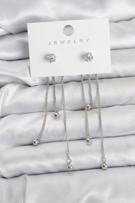 Kelebek Model Gümüş Renk Pirinç Sallantılı Kadın Küpe - 266596
