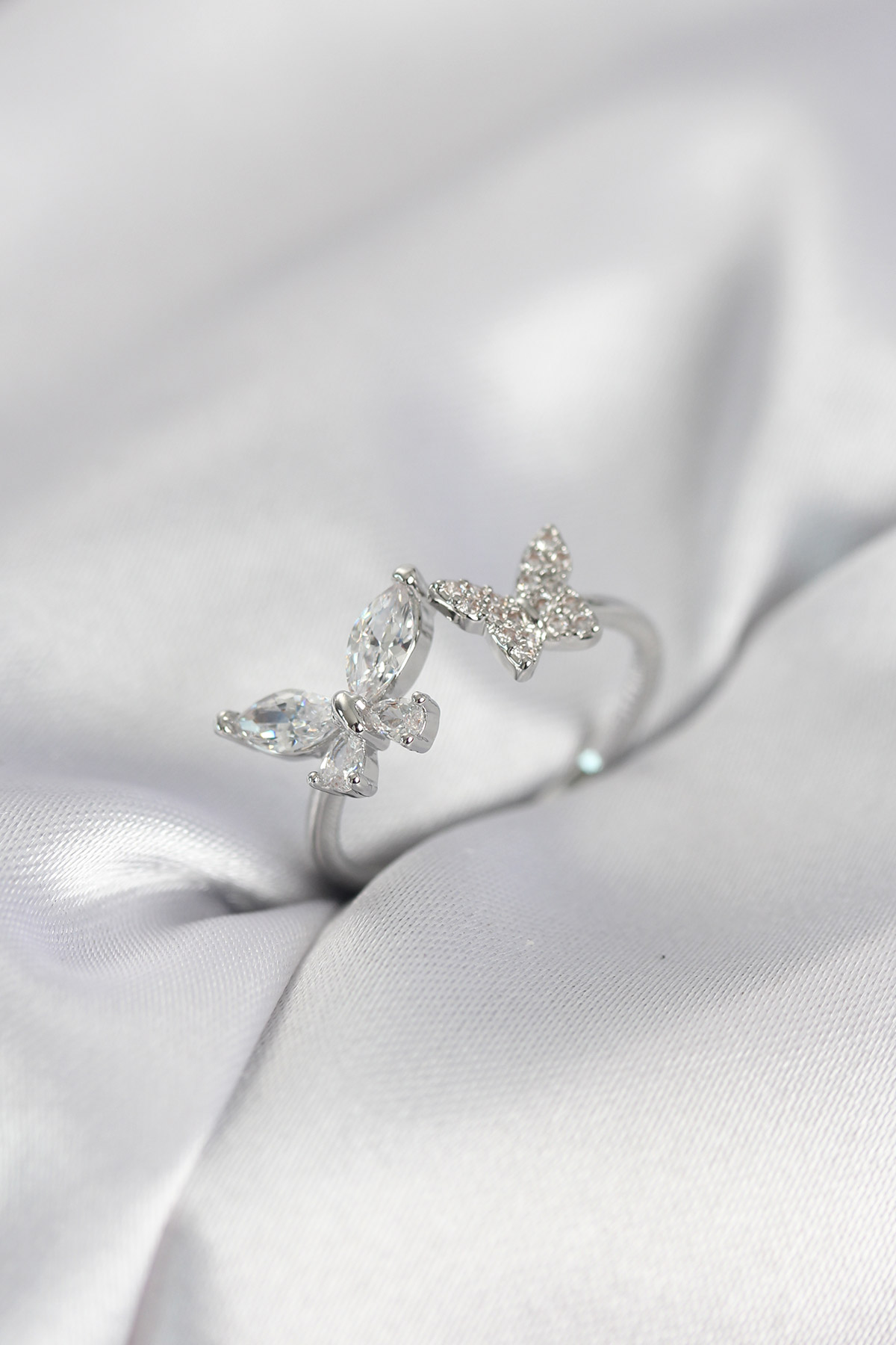 Kelebek Model Zirkon Taşlı Gümüş Renk Kadın Yüzük - 267619