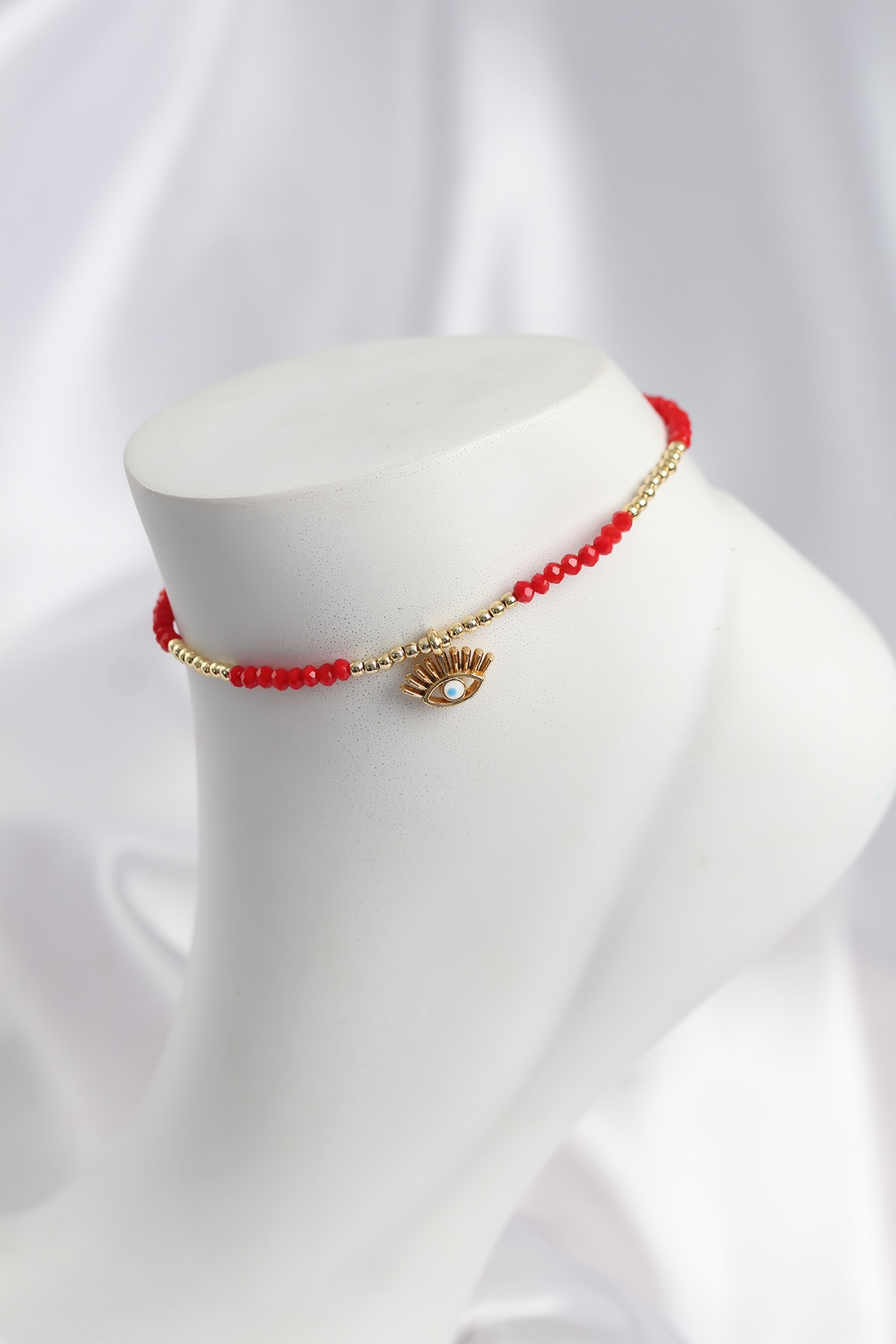Kırmızı Renk Boncuklu Nazarlı Göz Figürlü Halhal - 268424