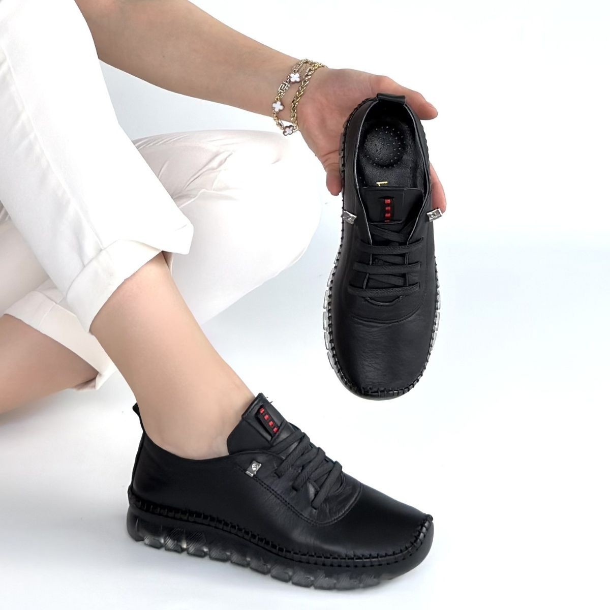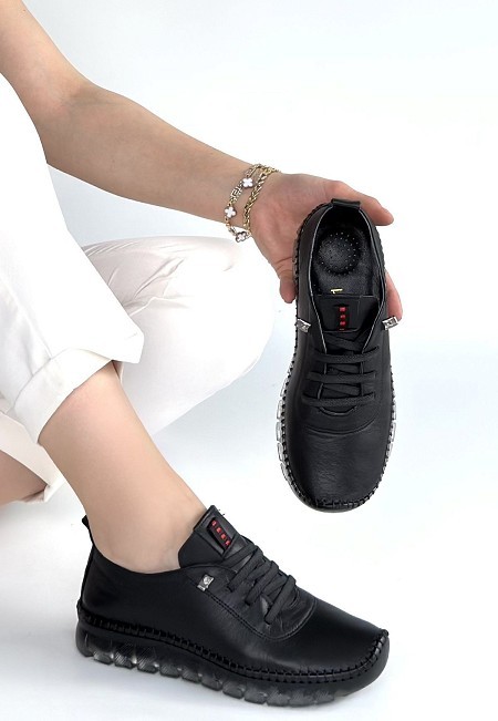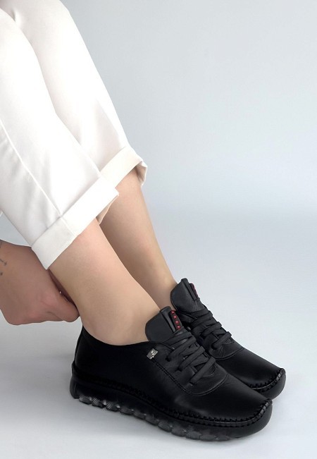 Kitta Siyah Deri Bağcıklı Spor Ayakkabı - 267869