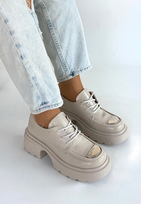 Kiya Bej Rugan Dolgu Topuk Oxford Ayakkabı - 265625