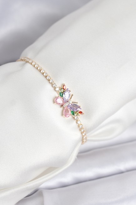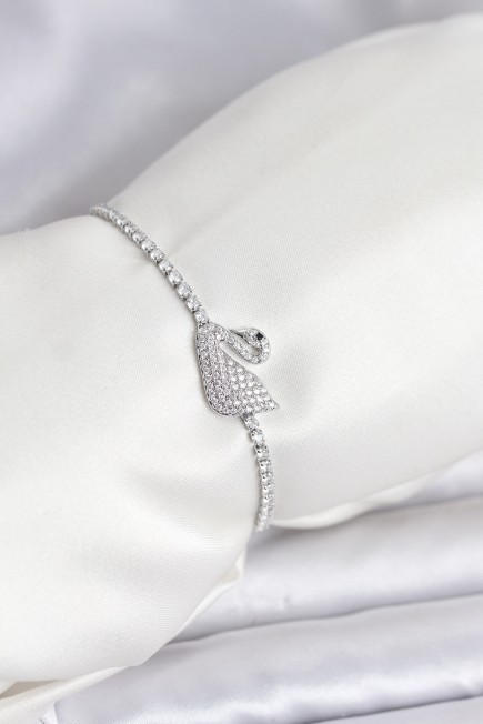 Kuğu Model Zirkon Taşlı Gold Renk Asansörlü Su Yolu Bileklik - 266928