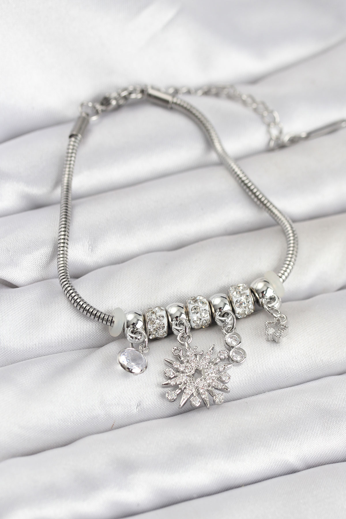 Kutup Yıldızı Model Charmlı Gümüş Renk Kadın Bileklik - 266910