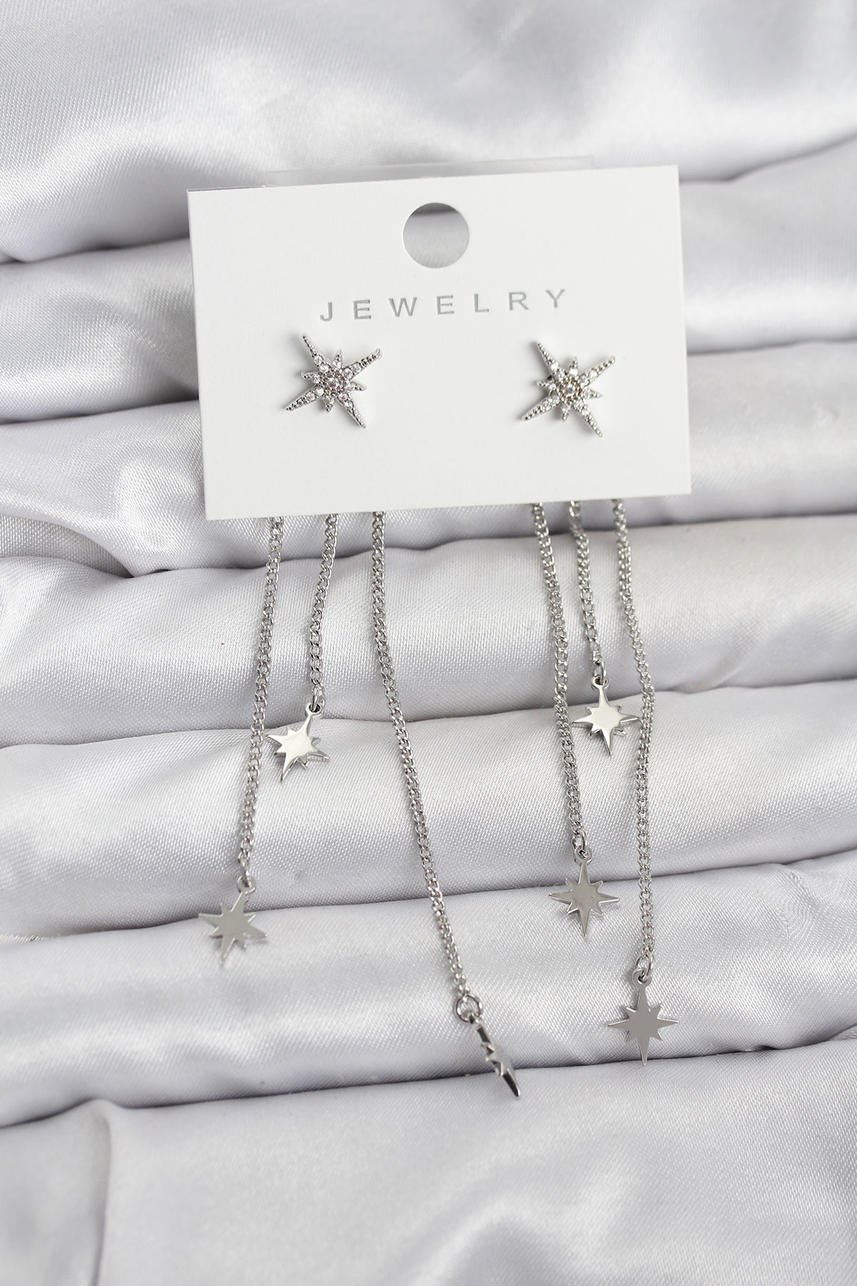 Kutup Yıldızı Model Gümüş Renk Pirinç Sallantılı Kadın Küpe - 266598