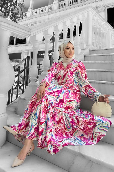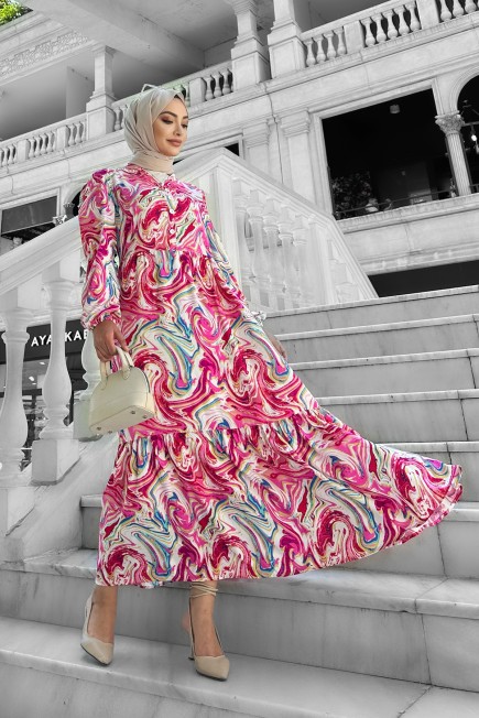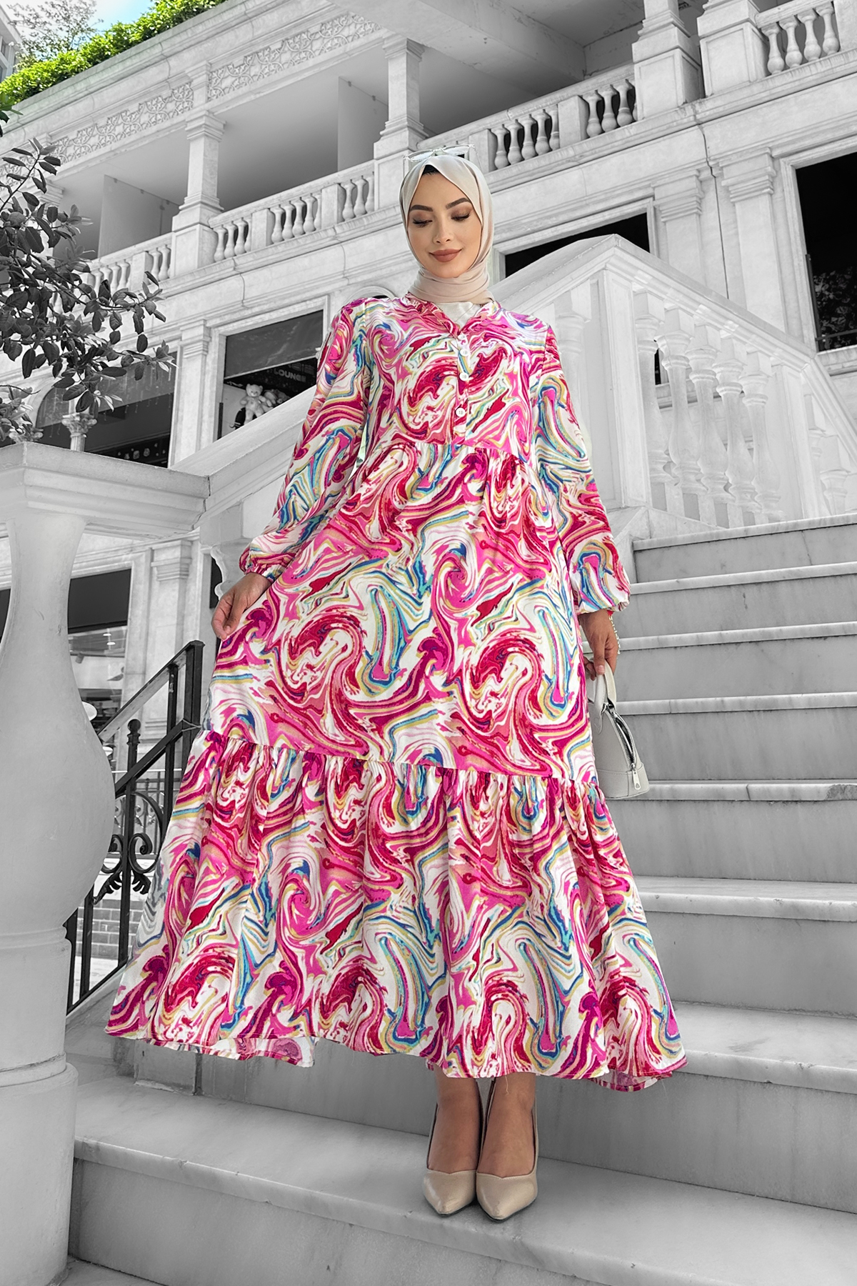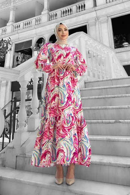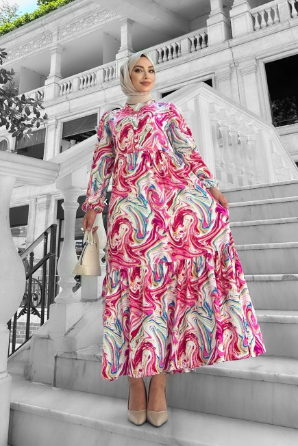 Lolita Viskon Desenli Elbise Fuşya - 264058