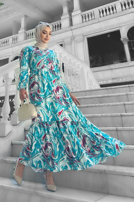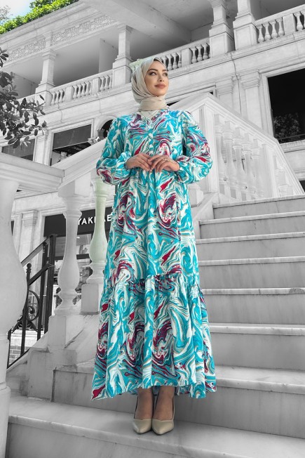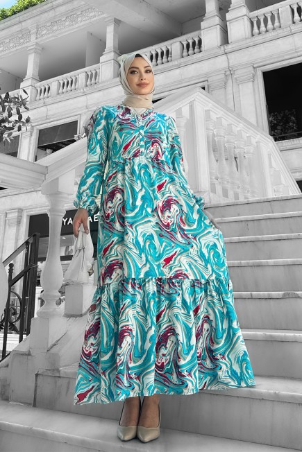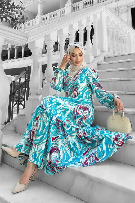 Lolita Viskon Desenli Elbise Mavi - 264060