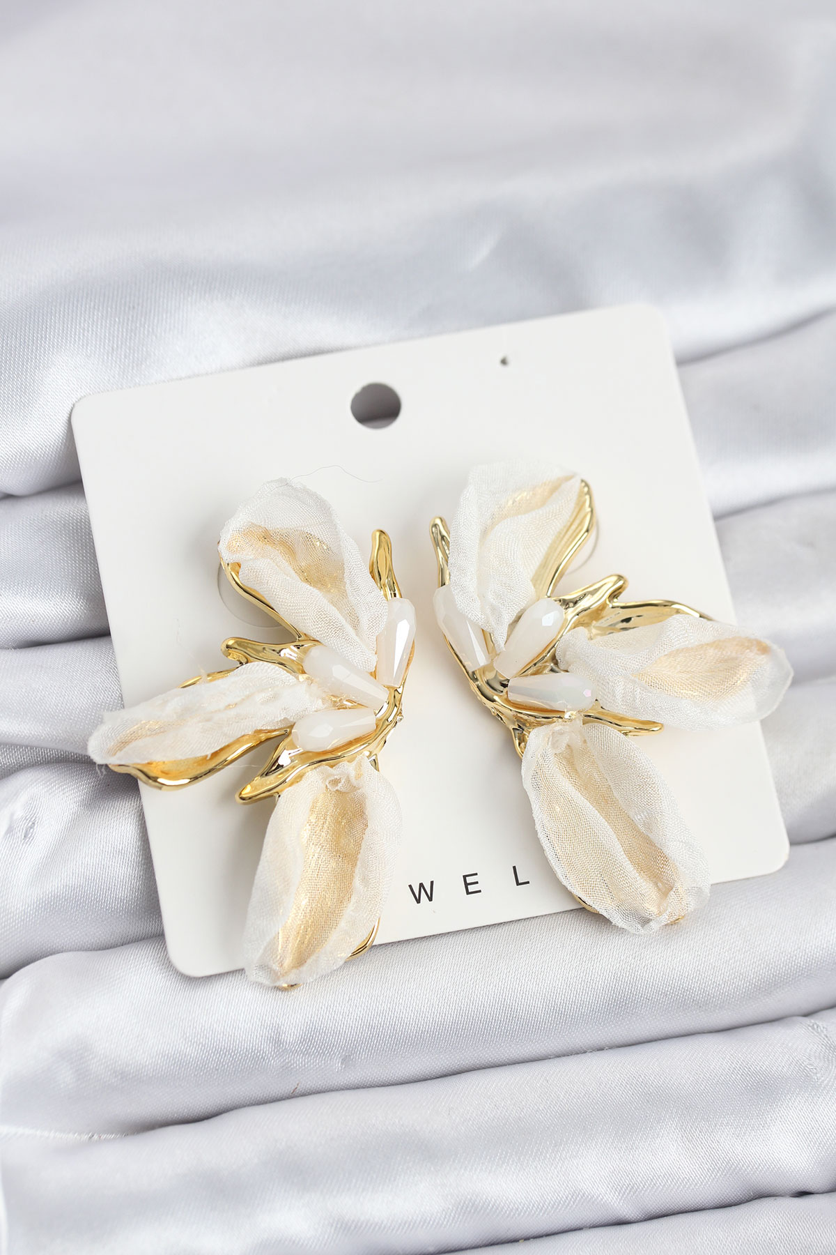 Lotus Model Beyaz Renk Tüllü Kadın Küpe - 267053