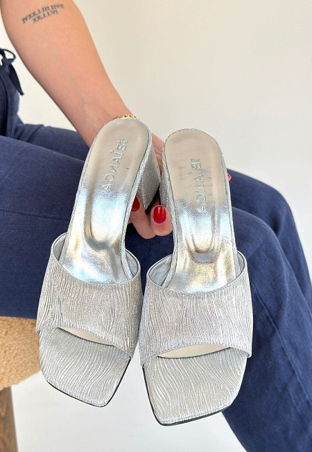 Luart Gümüş Simli Topuklu Terlik - 265356