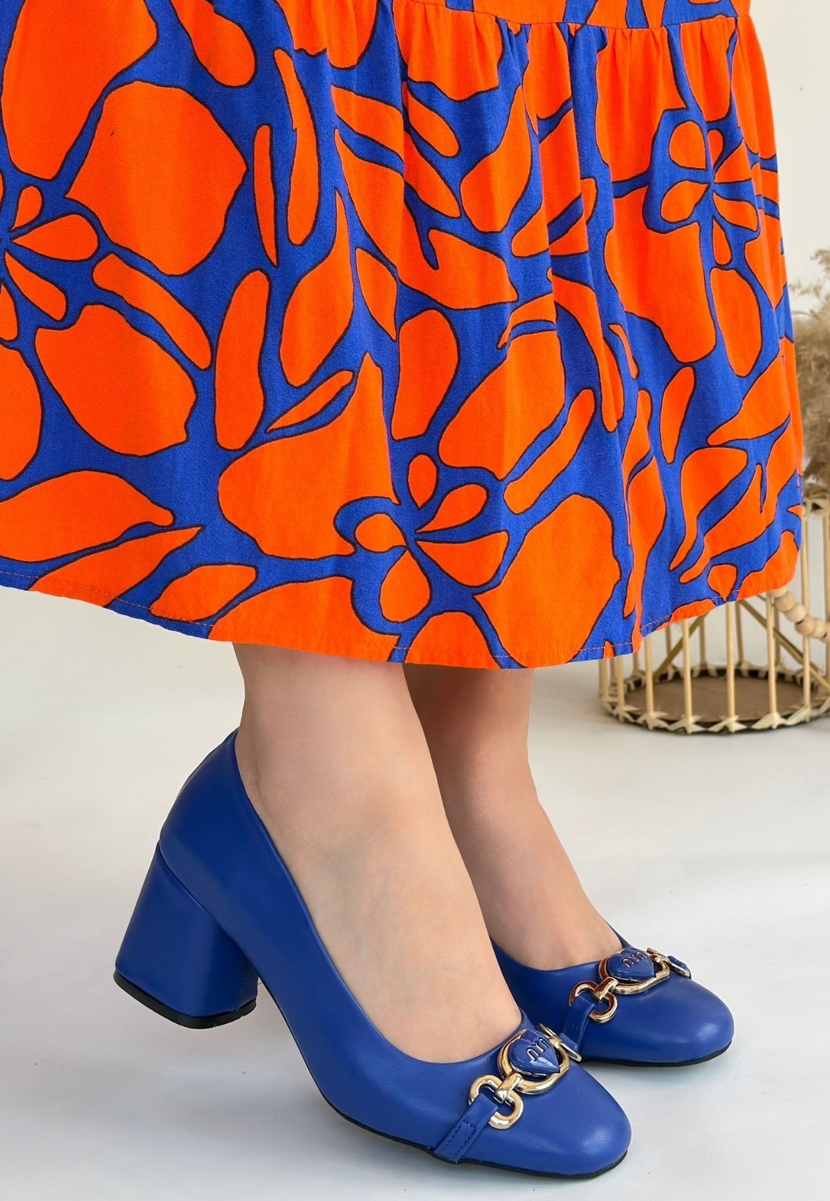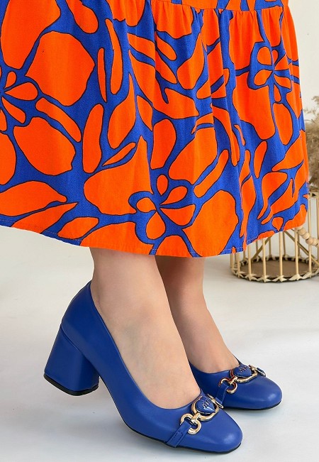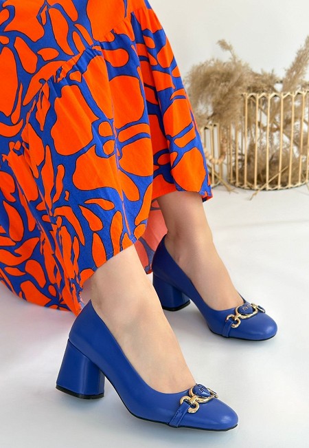 Lucky Mavi Cilt Topuklu Ayakkabı - 262879