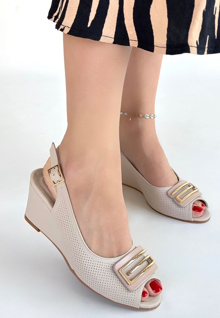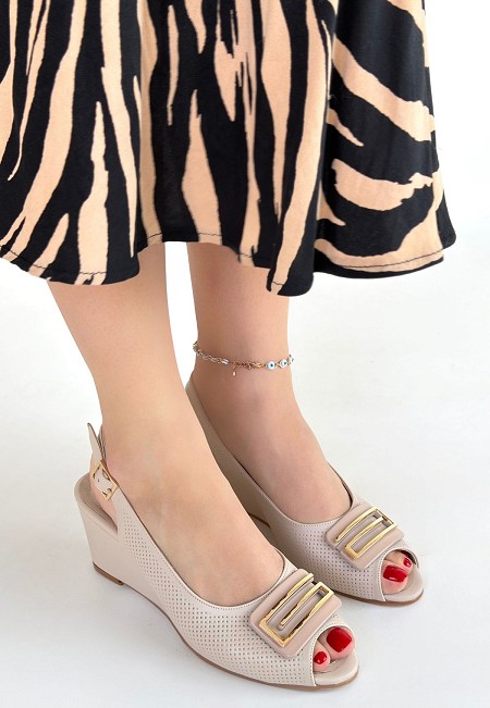 Mamba Bej Cilt Dolgu Topuk Ayakkabı - 265334