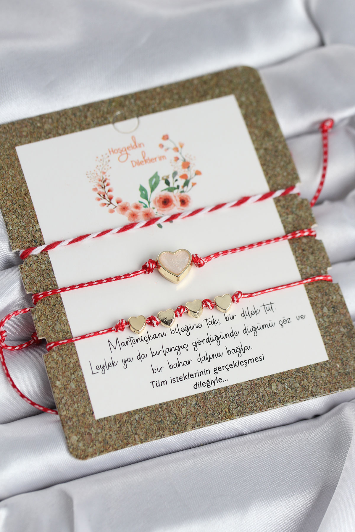 Bileklikler asansörlü makromedir. Objelerdeki renkler karışık renkte gönderilebilir.Martenicka Hikâyesi ve KökeniMartenicka geleneği, baharın gelişi, doğanın uyanışı ve iyilik–sağlık dilekleri ile ilişkilidir.En yaygın anlatıya göre:Balkan mitolojisinde “Baba Marta” (Mart Ana) adında bir figür bulunur.Baba Marta’nın yüzü neşeli olduğunda hava ısınır,Kızdığında ise yeniden soğur veya kar yağar.İnsanlar Baba Marta’nın yüzünü güldürmek, baharı çağırmak ve kötü ruhları uzak tutmak için kırmızı-beyaz ipten Martenicka takarlar.