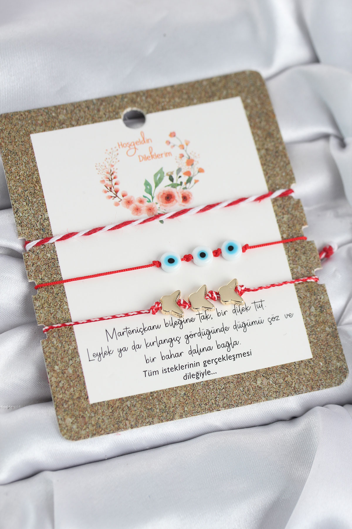 Bileklikler asansörlü makromedir. Objelerdeki renkler karışık renkte gönderilebilir.Martenicka Hikâyesi ve KökeniMartenicka geleneği, baharın gelişi, doğanın uyanışı ve iyilik–sağlık dilekleri ile ilişkilidir.En yaygın anlatıya göre:Balkan mitolojisinde “Baba Marta” (Mart Ana) adında bir figür bulunur.Baba Marta’nın yüzü neşeli olduğunda hava ısınır,Kızdığında ise yeniden soğur veya kar yağar.İnsanlar Baba Marta’nın yüzünü güldürmek, baharı çağırmak ve kötü ruhları uzak tutmak için kırmızı-beyaz ipten Martenicka takarlar.
