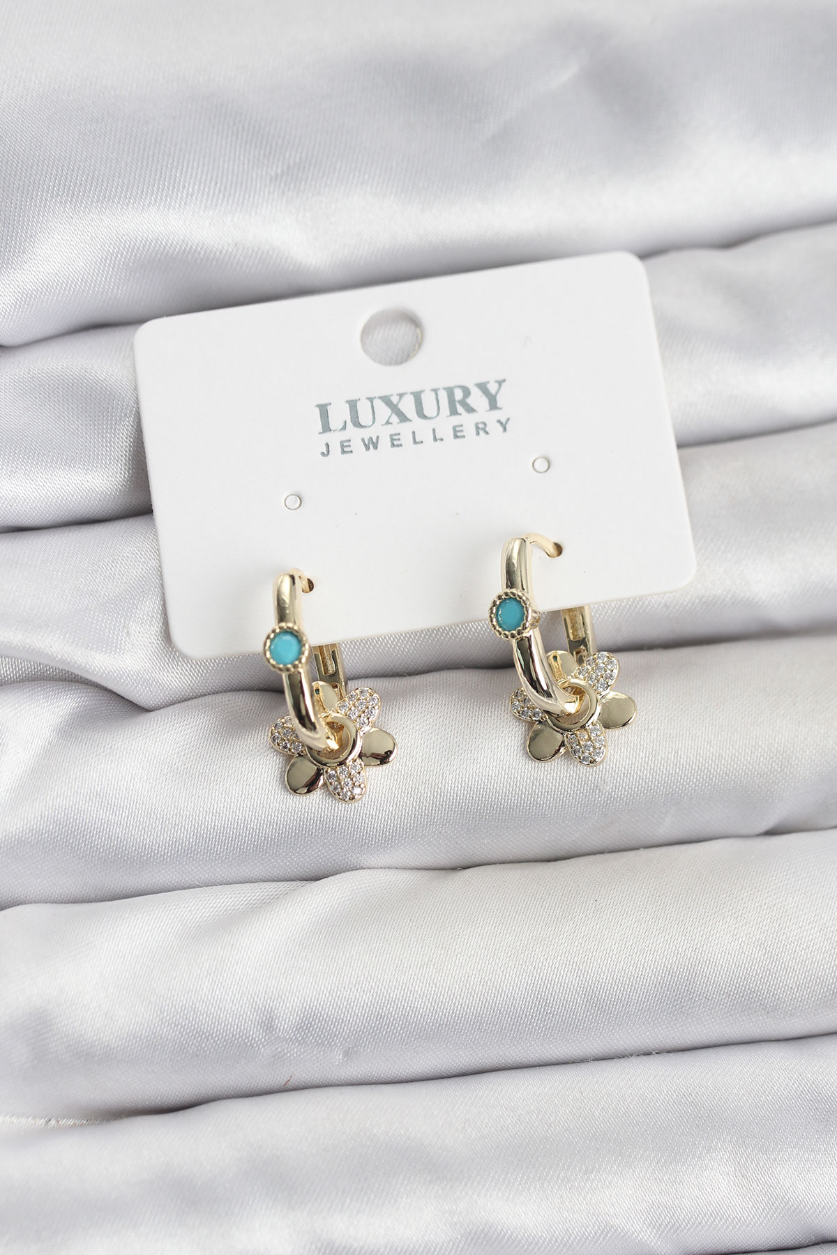 Mavi Taş Detaylı Pirinç Gold Renk Kadın Göçmen Küpesi - 266937