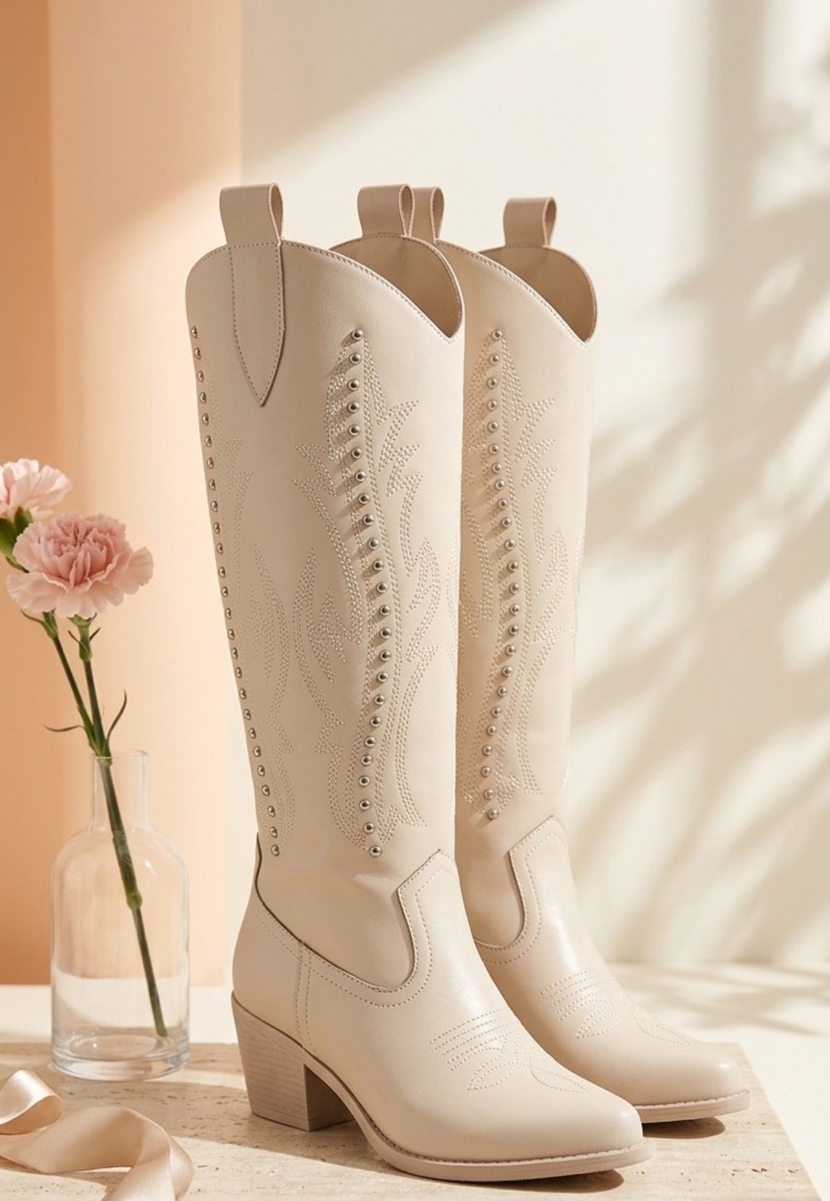 Meof Bej Cilt Topuklu Çizme - 266926