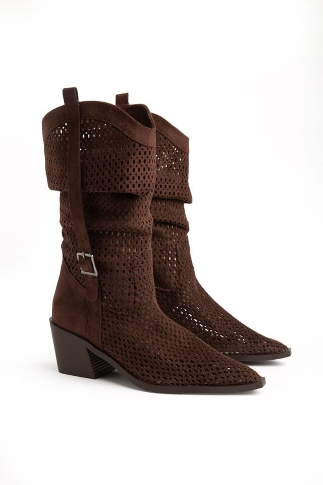 Meria Kahverengi Süet Lazer Kesim Kovboy Topuklu Çizme - 268492