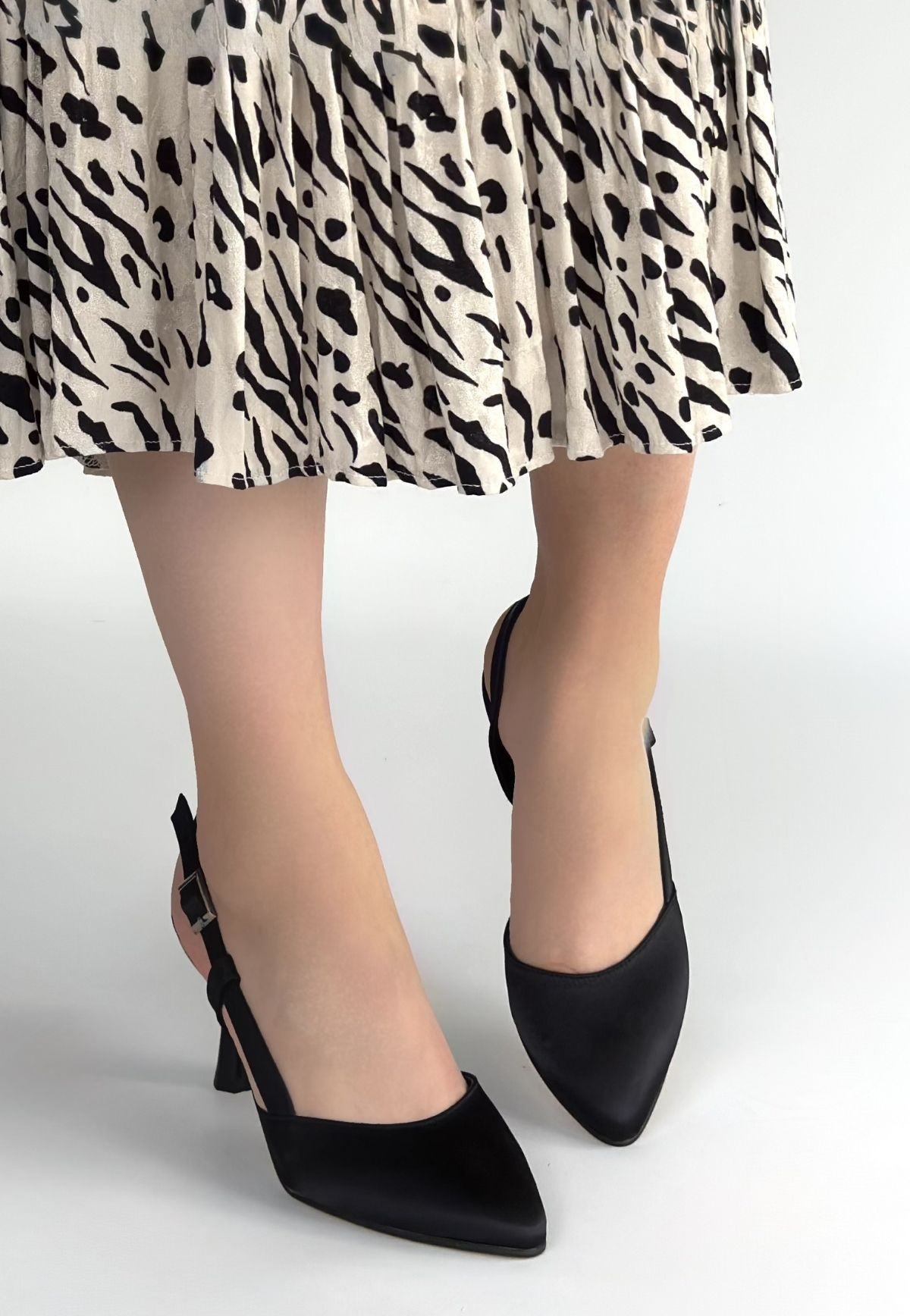 Minde Siyah Saten Topuklu Ayakkabı - 267829