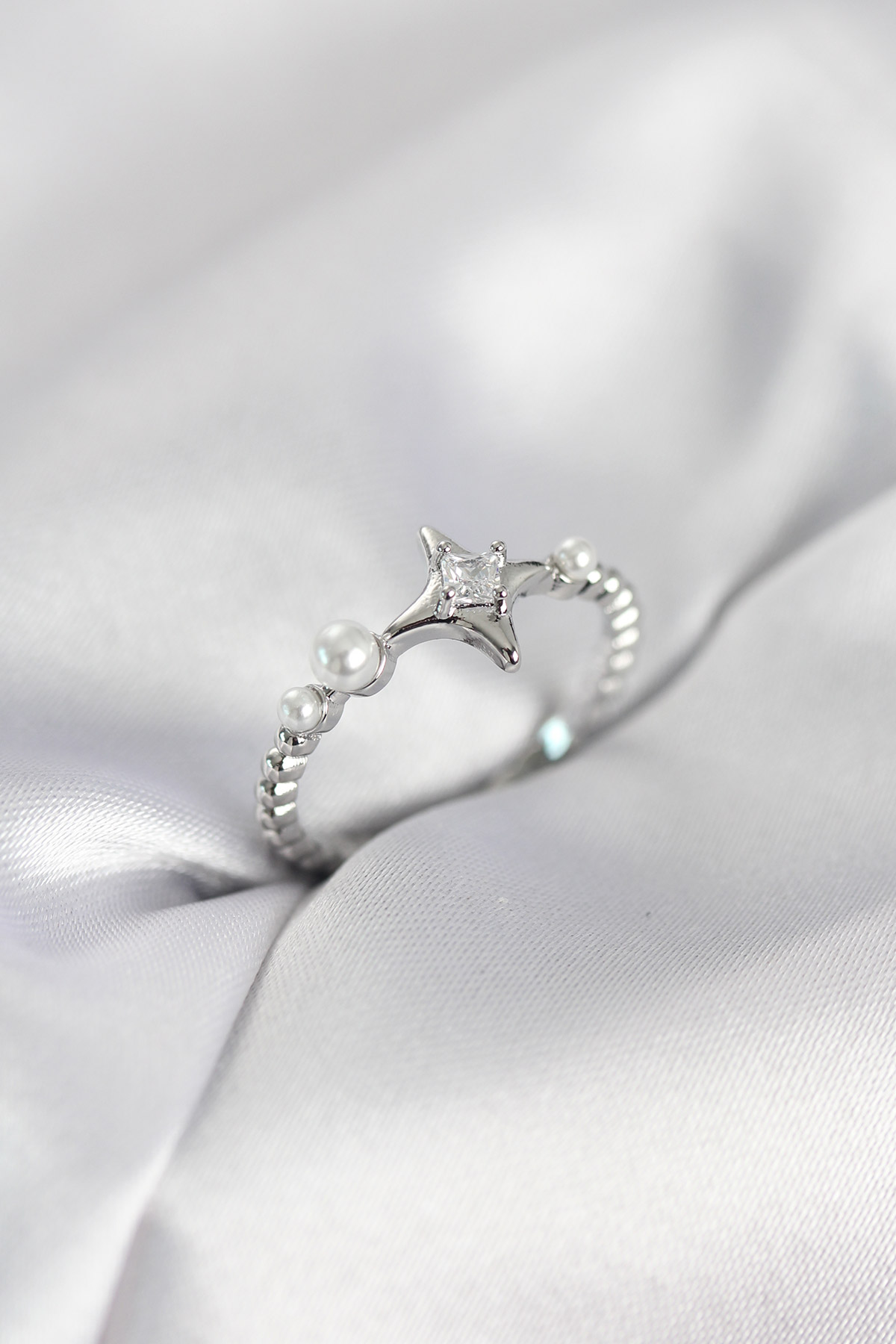 Minimal Kutup Yıldızı Model Zirkon Taşlı Gümüş Renk Kadın Yüzük - 267668