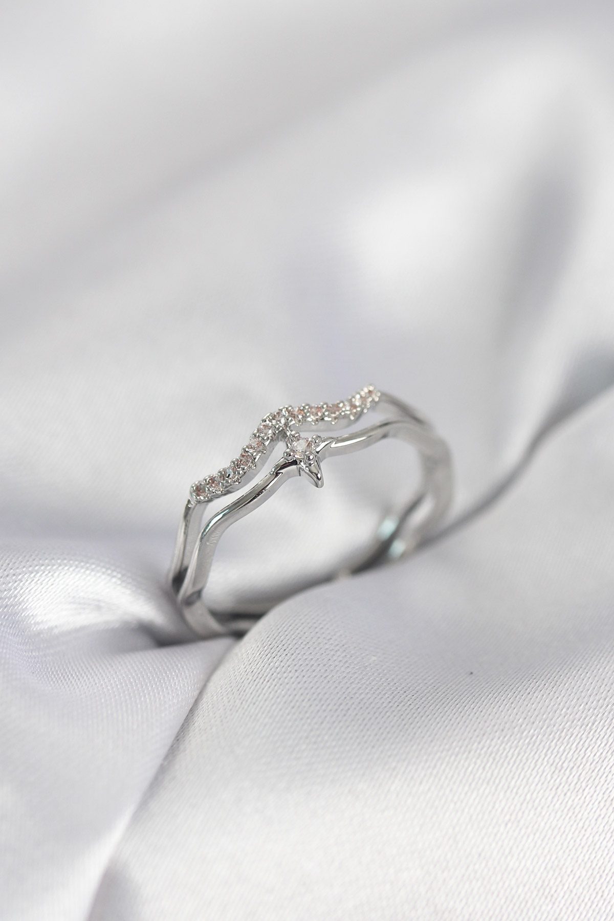 Minimal Yıldız Model Gümüş Renk Zirkon Taşlı Kadın Yüzük - 267631
