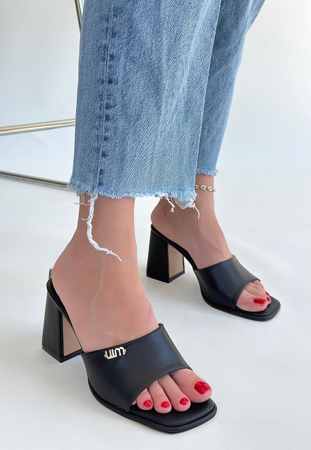 Miyon Siyah Cilt Topuklu Terlik - 265320