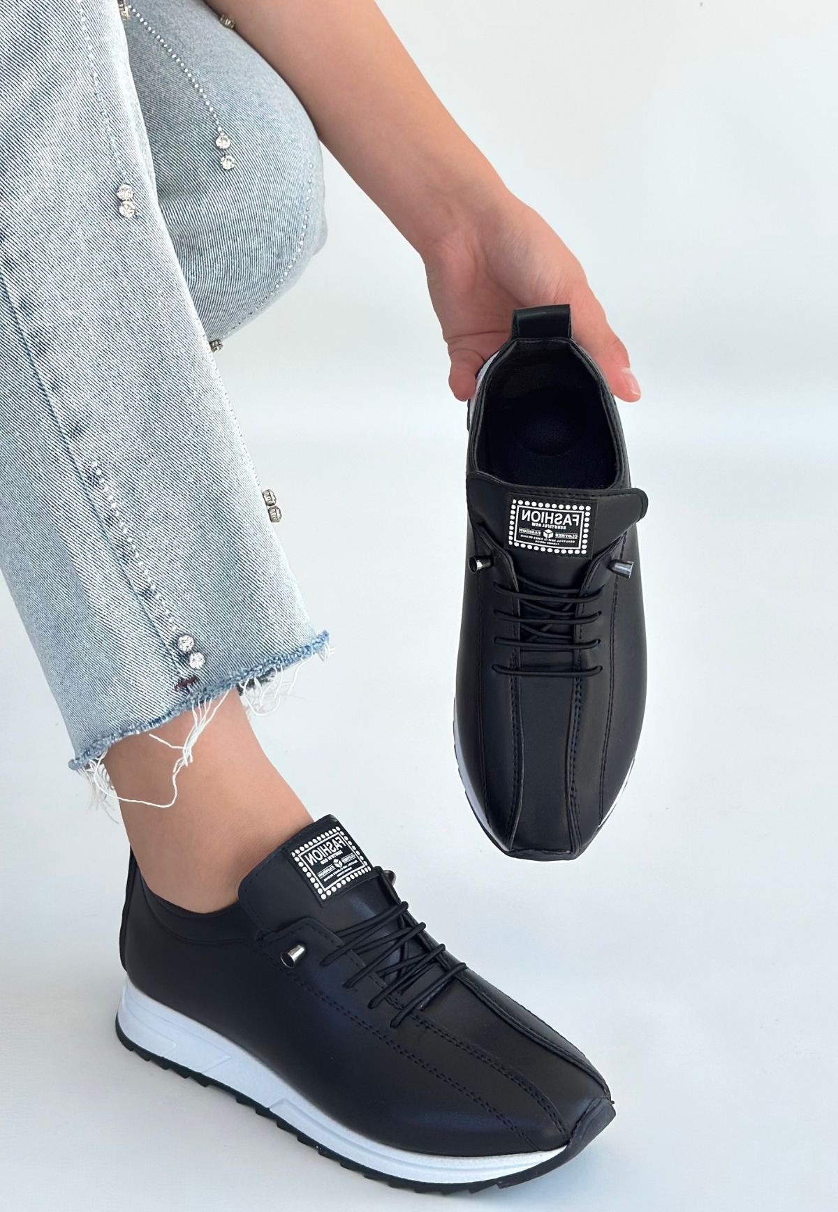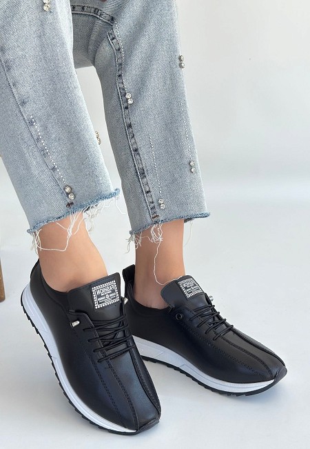 Monya Siyah Cilt Bağcıklı Spor Ayakkabı - 260746