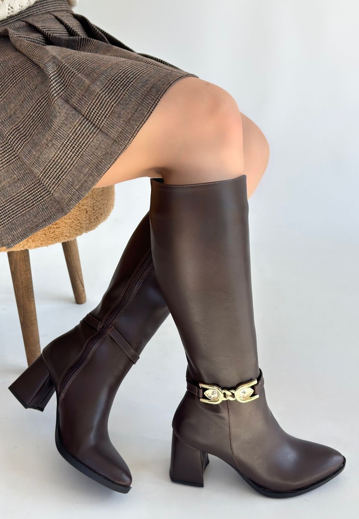 Mooni Kahverengi Cilt Topuklu Çizme - 266347